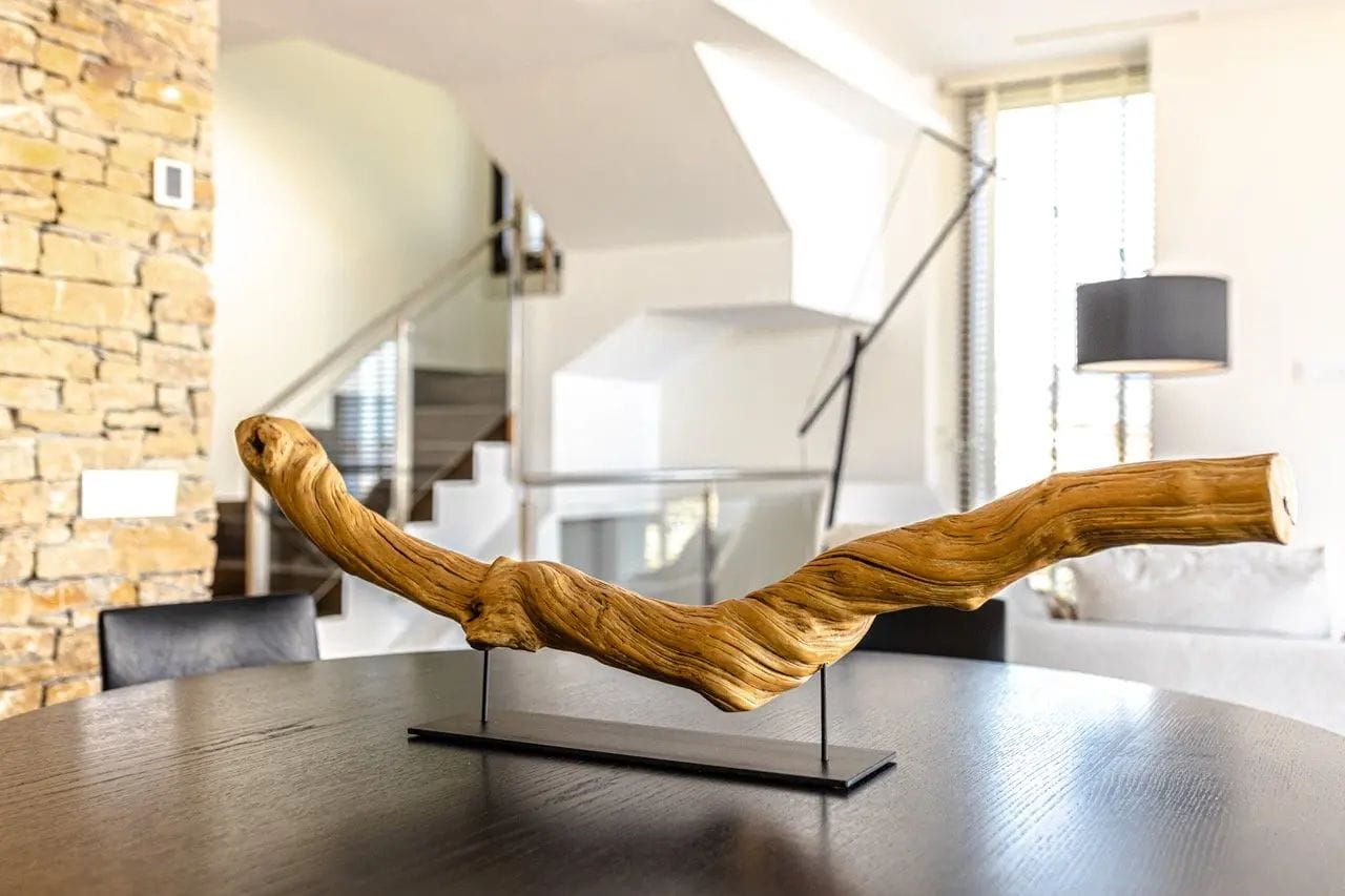 It is a sustainable home, built with noble materials such as wood and stone. The villa has three floors, four bedrooms and three bathrooms. The master bedroom is almost a flat, as it includes all kinds of luxuries: dressing room, private terrace and living area.