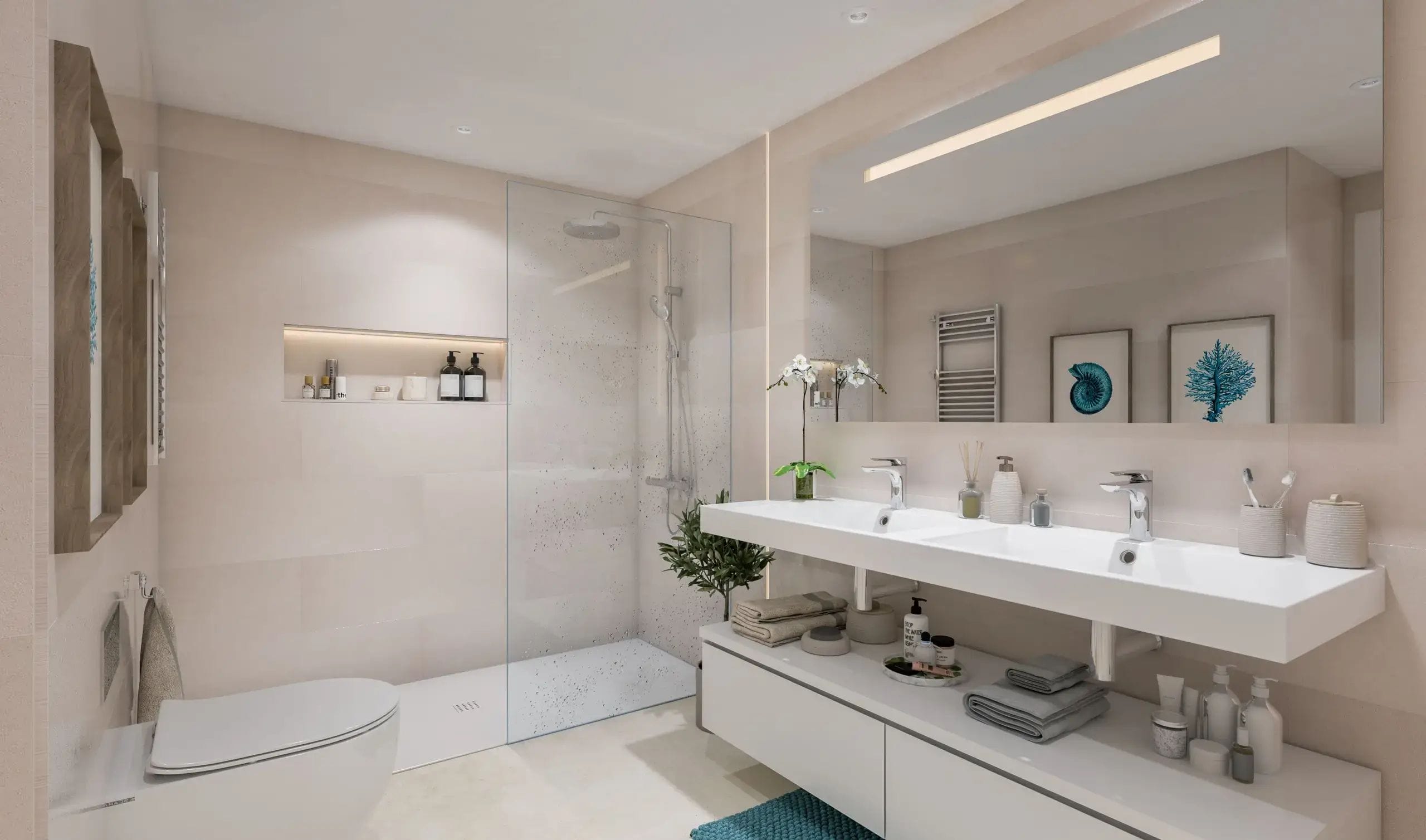 The building houses 116 exclusive apartments, conceived to offer a living experience of luxury and sophistication. Each space has been carefully designed to offer a relaxing atmosphere, like that of a high-end resort, but with the dynamism and energy of the centre of Fuengirola just a few steps away. The architecture, with its clean lines and elegant curves, stands out as a unique work on the Costa del Sol, a true urban retreat where every detail has been conceived to elevate the experience of its residents.