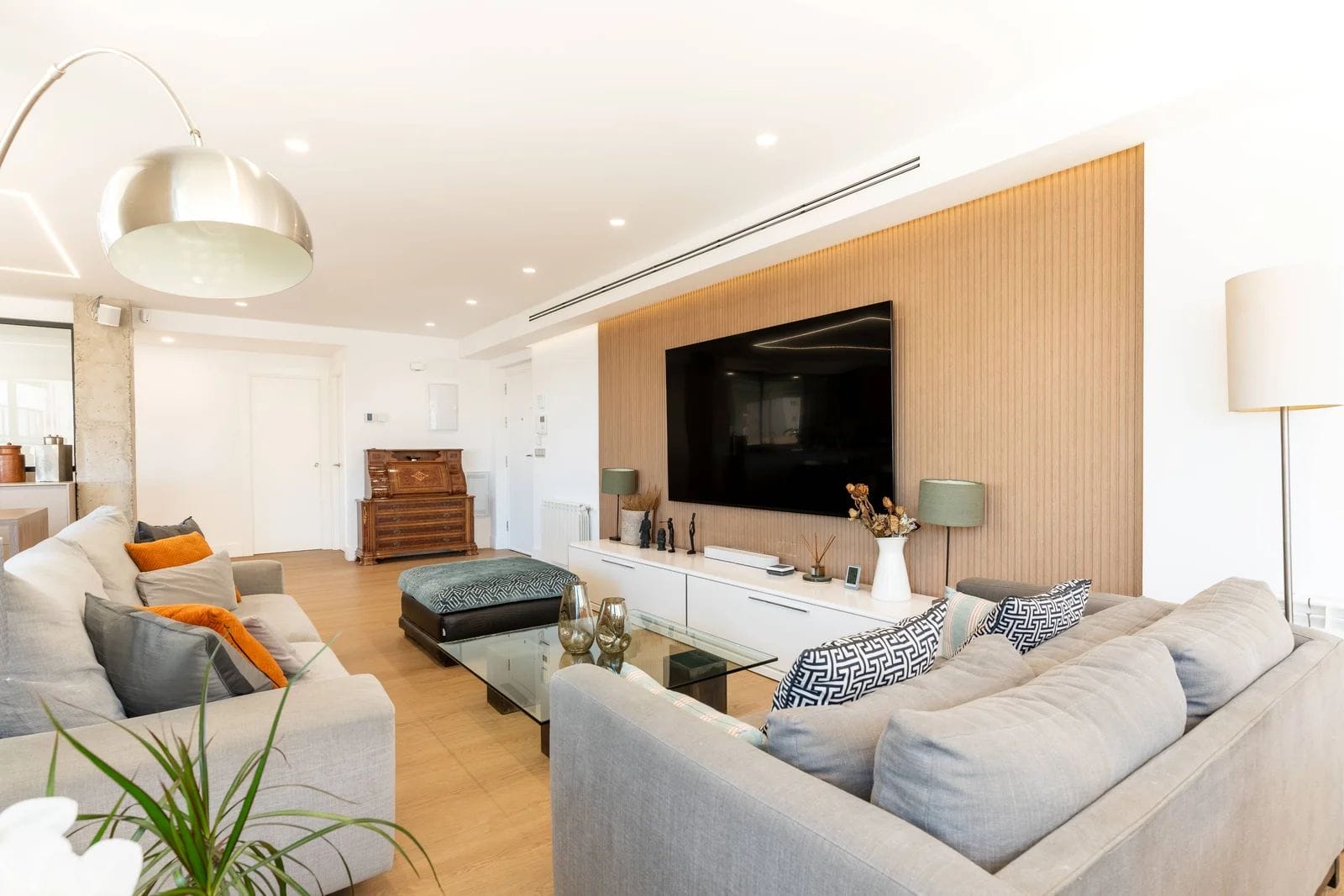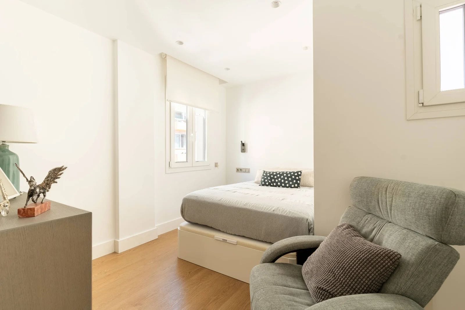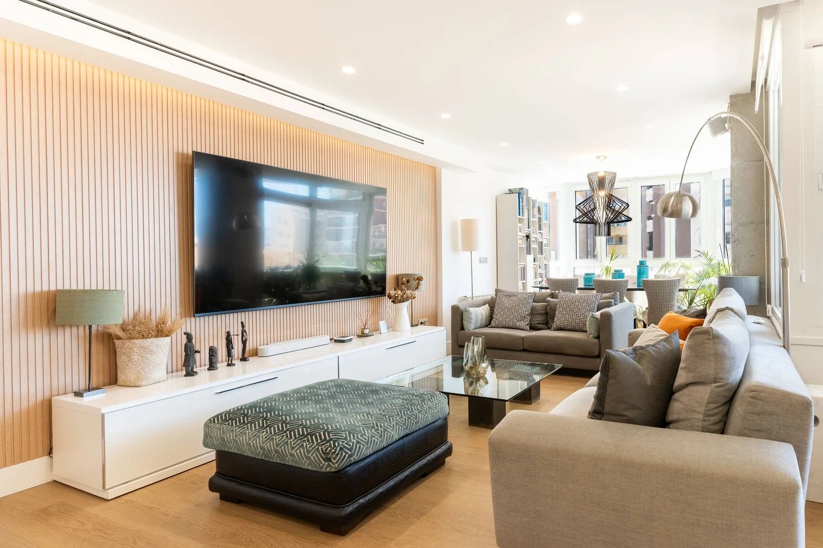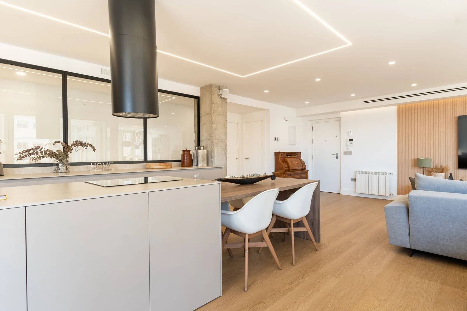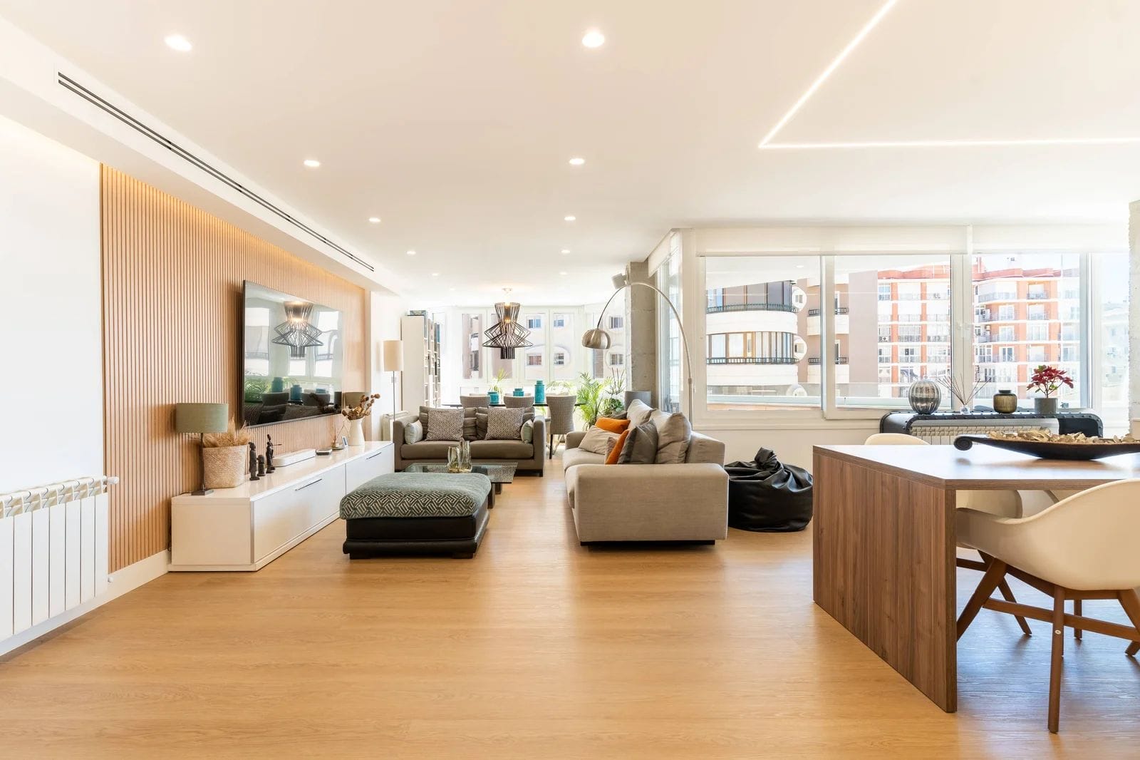 The property has been recently refurbished with top-quality materials, presenting a sleek, modern aesthetic and a thoughtfully designed layout, designed to maximize natural light. The main living area unfolds into a spacious open-plan environment, where the lounge, dining area, and fully equipped kitchen coexist in perfect harmony an ideal setting for both relaxed living and social gatherings.