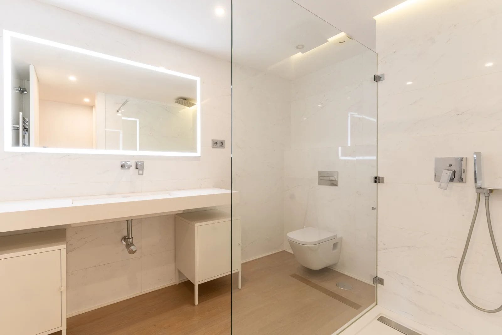 The spacious master bedroom is designed as a private retreat, offering generous proportions and a serene atmosphere. It features a stylish walk-in closet that provides ample storage and organisation, along with an elegant en-suite bathroom fitted with high-quality finishes, creating a perfect balance of comfort and sophistication. Additionally, it features two more bedrooms, both equipped with built-in wardrobes and bathed in warm natural light throughout the day.
