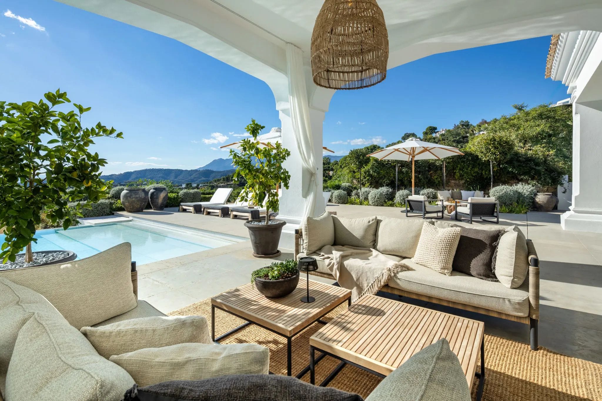 Despite its private surroundings, the villa is well connected. Within less than ten minutes, you will find supermarkets and a new shopping center, as well as prestigious international schools such as Colegio Atalaya and American School Atlas. The beach is approximately a 15-minute drive away, offering numerous outdoor leisure options.