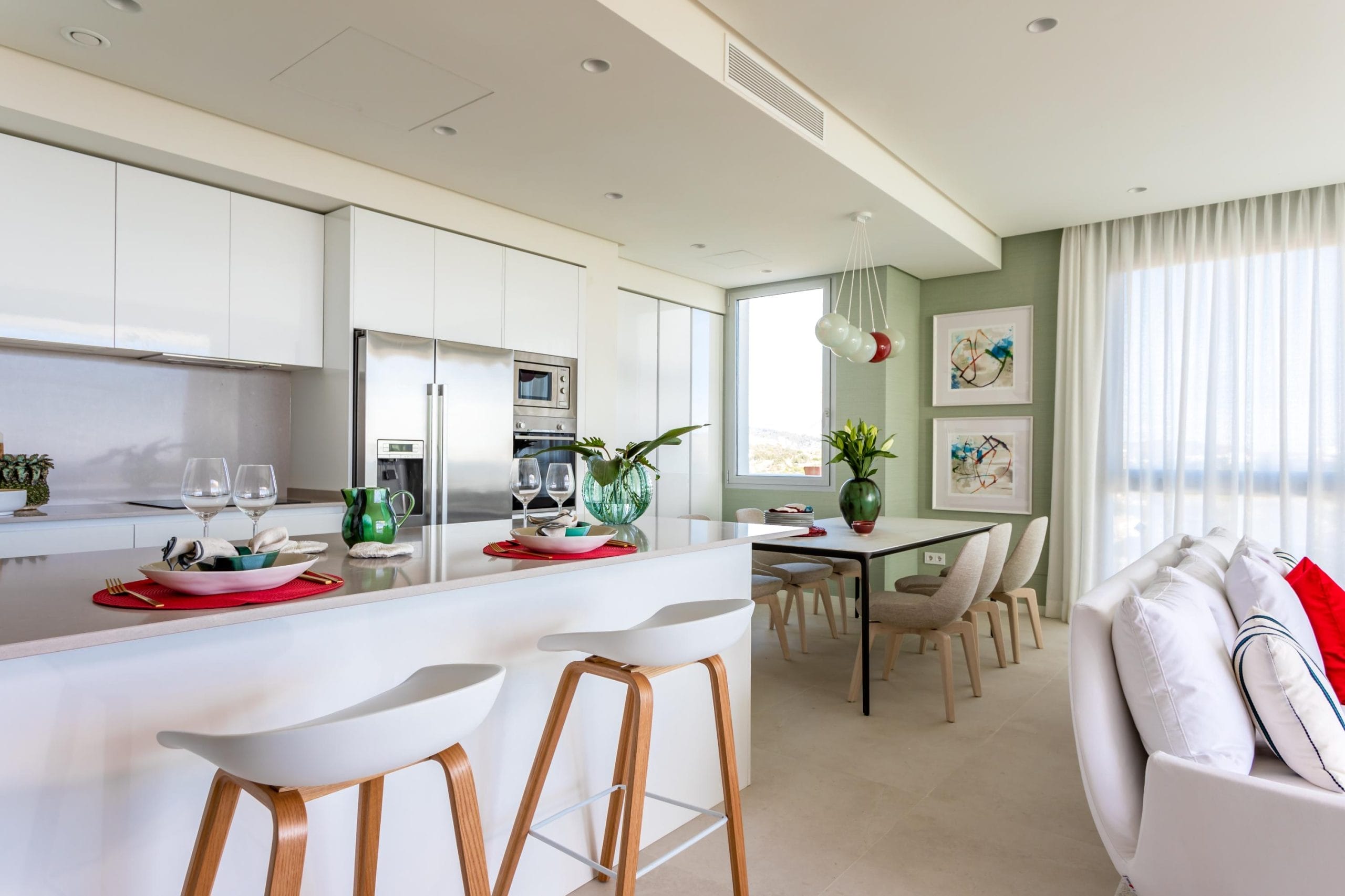 The building has a timeless Andalusian allure, designed to avoid cold ultra-modern lines and blending seamlessly with the wild natural environment. From the generous terrace you can enjoy magnificent views of the mountains, golf course, the Mediterranean Sea, Gibraltar and the Atlas Mountains in Morocco. Within the project, you will find 2 Clubhouses, an outdoor heated swimming pool, a fully equipped gym, a spa hammam, a social/co-working area, and 2 tennis and paddle courts.