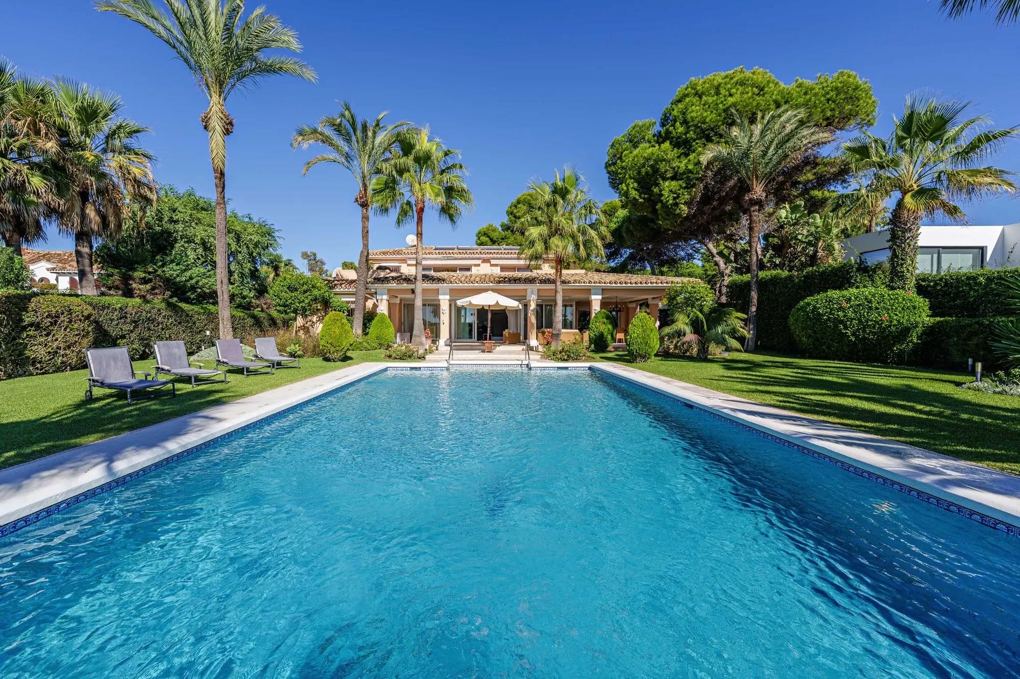 Located in Paraiso Barronal, a quiet and picturesque residential area west of Marbella on the beachfront, it stands out for its large plot and its direct access to the sea through a private gate, making it one of the most exclusive in Estepona. Thanks to the residential enclave in which it is located, it offers convenient access to the A7 and AP7 highways, facilitating the connection to other highlights of the Costa del Sol, such as Estepona, San Pedro de Alcántara and Marbella.