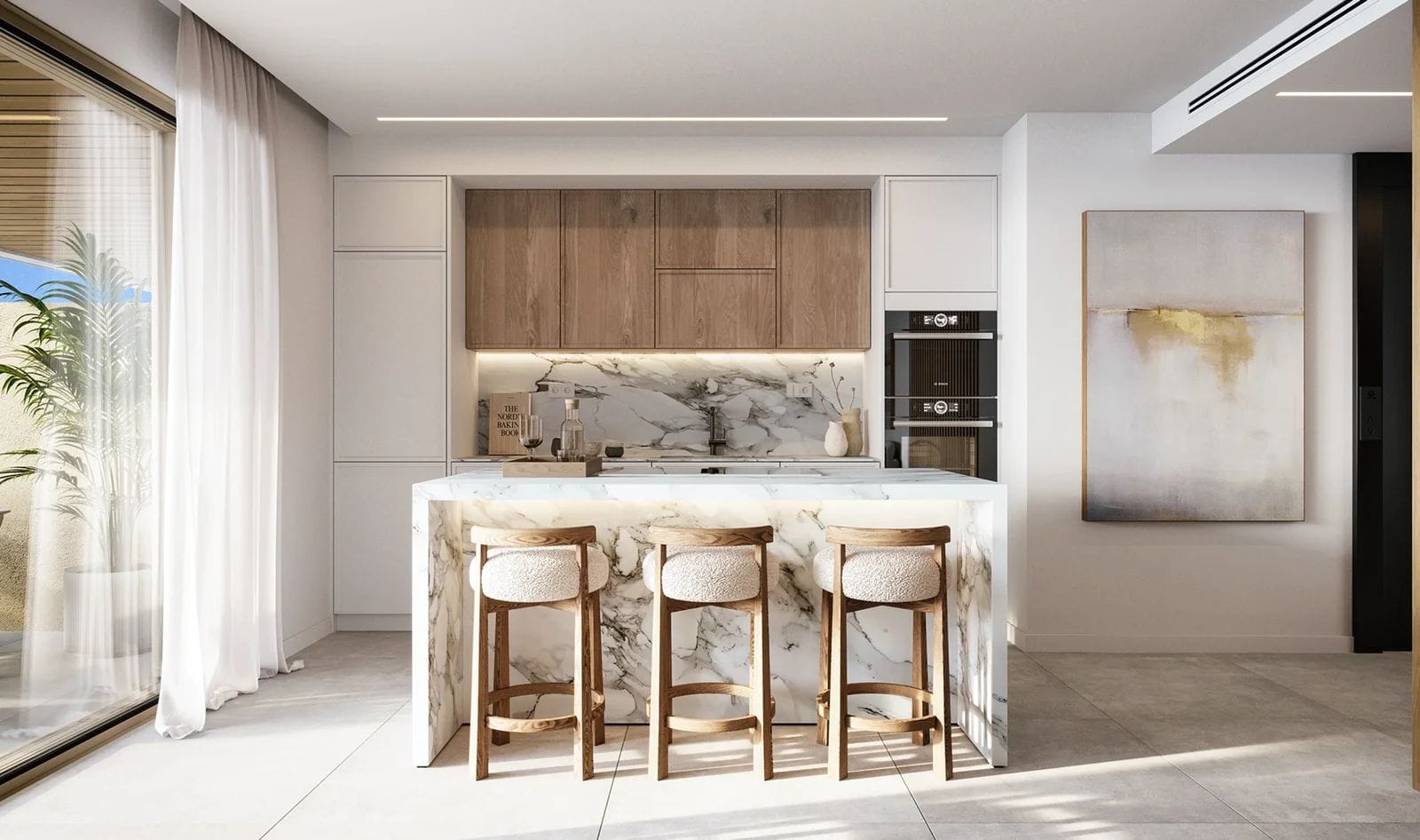 This ground floor apartment is designed to offer a comfortable and elegant living environment, ideal for both permanent residence and holiday use. The property features one bedroom, a bright open plan living area, and a fully integrated kitchen with high quality finishes. Large windows maximise natural light, while the living space opens onto a covered terrace and a private garden, creating a seamless connection between indoor and outdoor areas and an ideal setting to enjoy the Mediterranean climate.