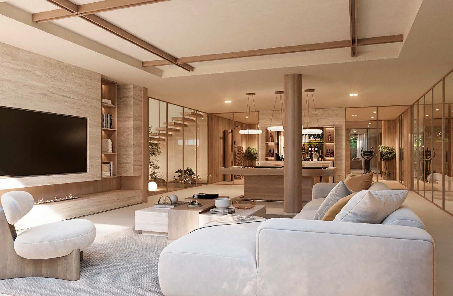 Surrounded by landscaped gardens, the villa enjoys a peaceful and private setting, further enhanced by underground vehicular circulation which removes surface traffic and creates a safe and tranquil environment. All of this contributes to a constant sense of calm and privacy.