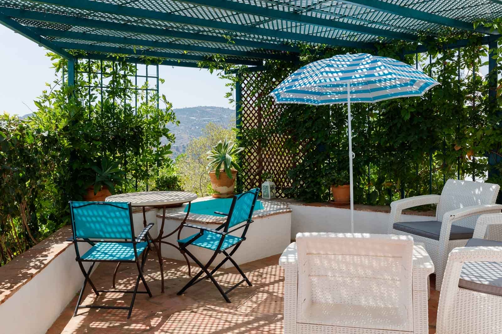 The estate comprises three independent houses built in traditional Andalusian style, thoughtfully restored to preserve their original character while offering comfort and functionality. The mature gardens surround the homes with a romantic atmosphere, featuring a swimming pool and several outdoor living areas designed for relaxation and entertaining.