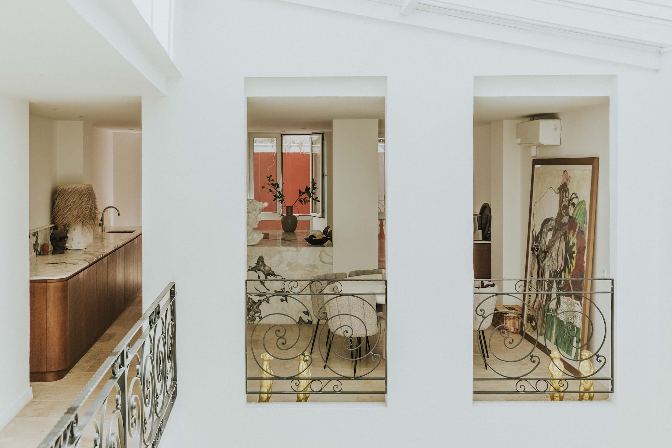 With a built area of 319 m² distributed over three floors, every space radiates harmony and elegance. The property features three spacious bedrooms and three bathrooms, all meticulously designed with careful attention to light, geometry, and materials. The interior designer responsible for the renovation achieved a perfect balance between modern comfort and the charm of the original structure. Authentic elements such as original wooden beams, natural stone, and wrought-iron details have been subtly integrated into a contemporary design.