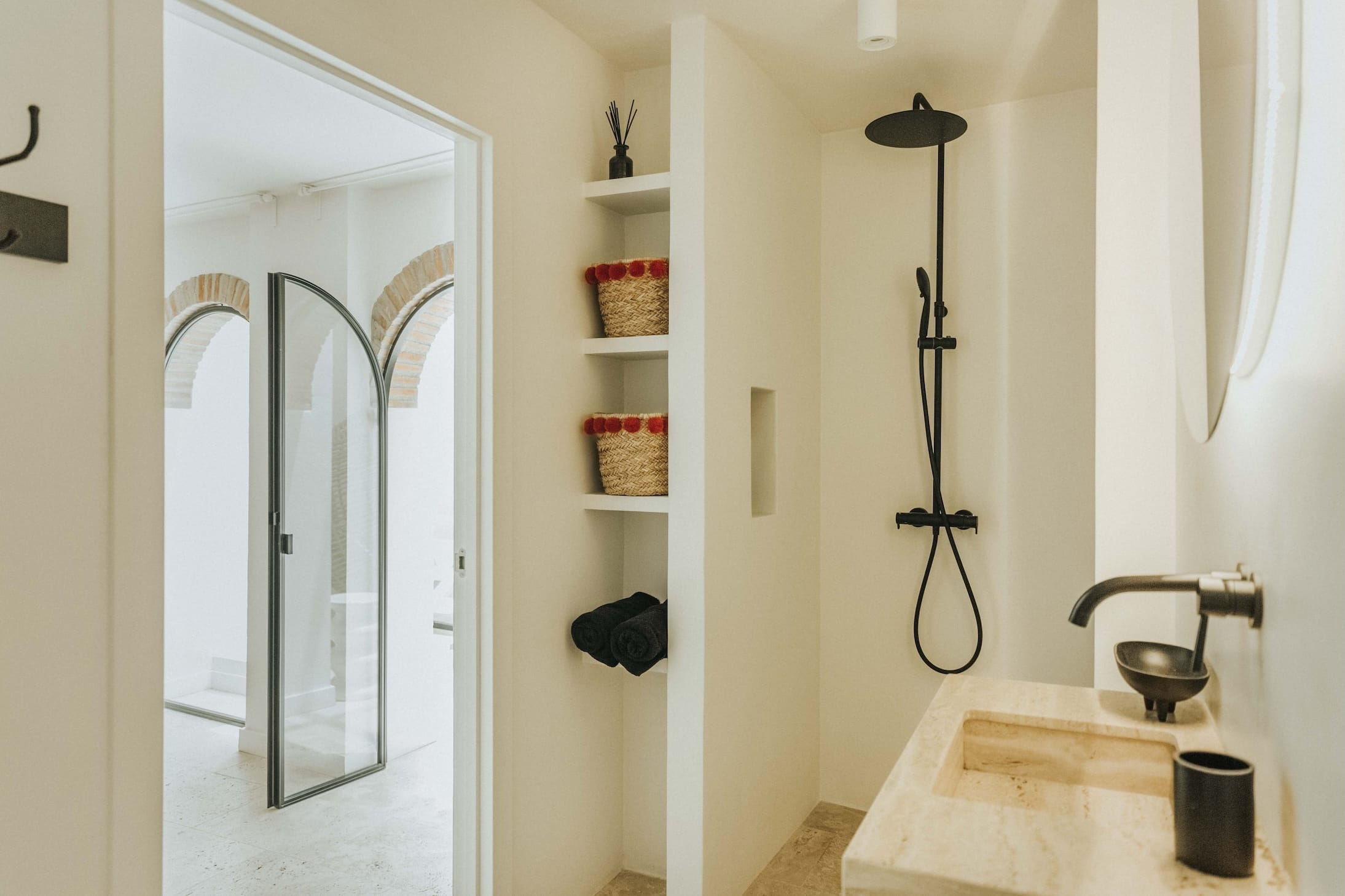 On the upper floor, an expansive rooftop terrace awaits, complete with a pergola and integrated barbecue. From here, one can enjoy panoramic views over the rooftops of the old town, the perfect setting for long summer evenings, intimate dinners, or peaceful sunrises.