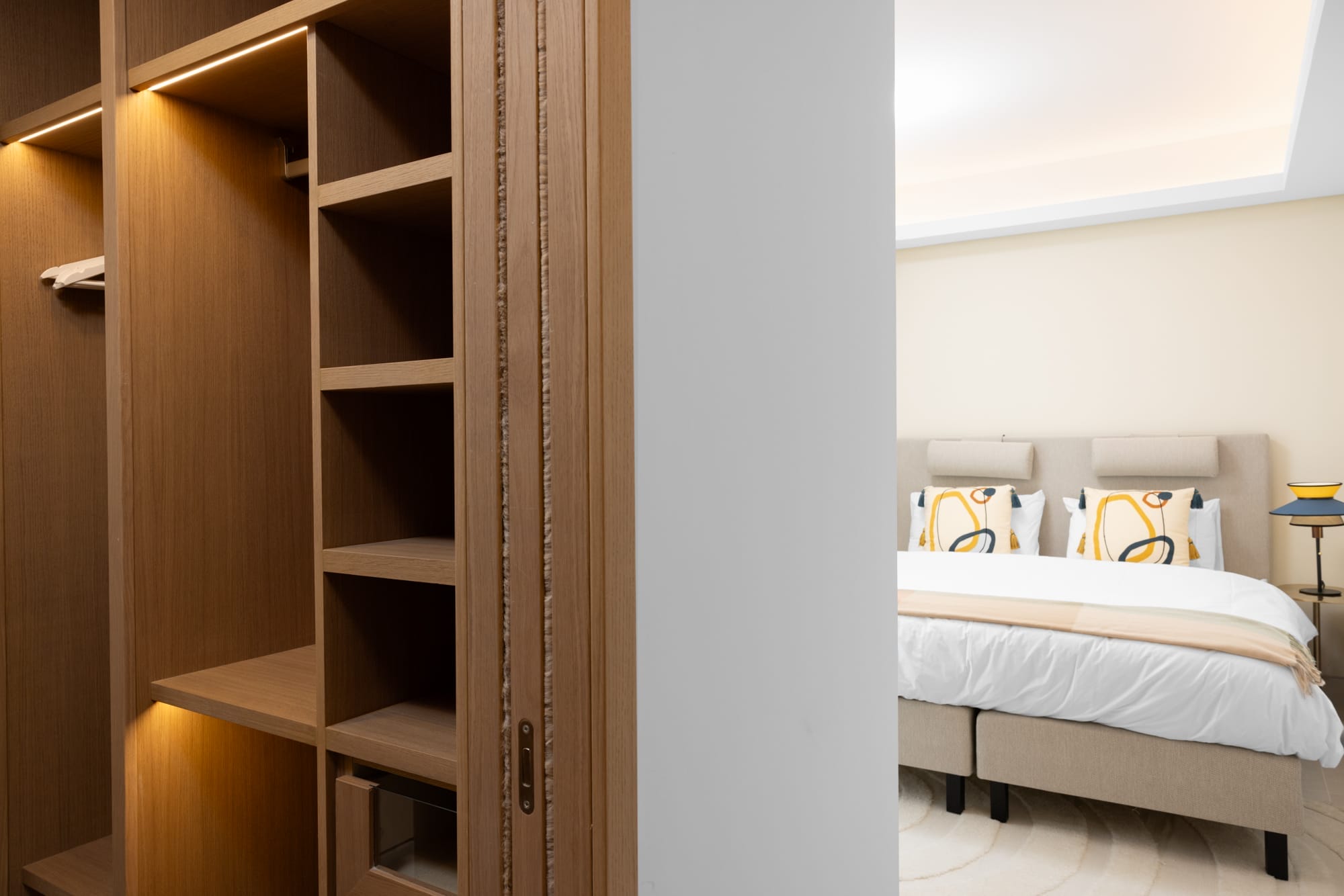 Every detail of the apartment has been carefully chosen to provide maximum comfort. The modern kitchen is fully equipped with high-end appliances—perfect for culinary enthusiasts. The living room opens onto the terrace, seamlessly blending indoor and outdoor spaces in a refined and welcoming atmosphere.