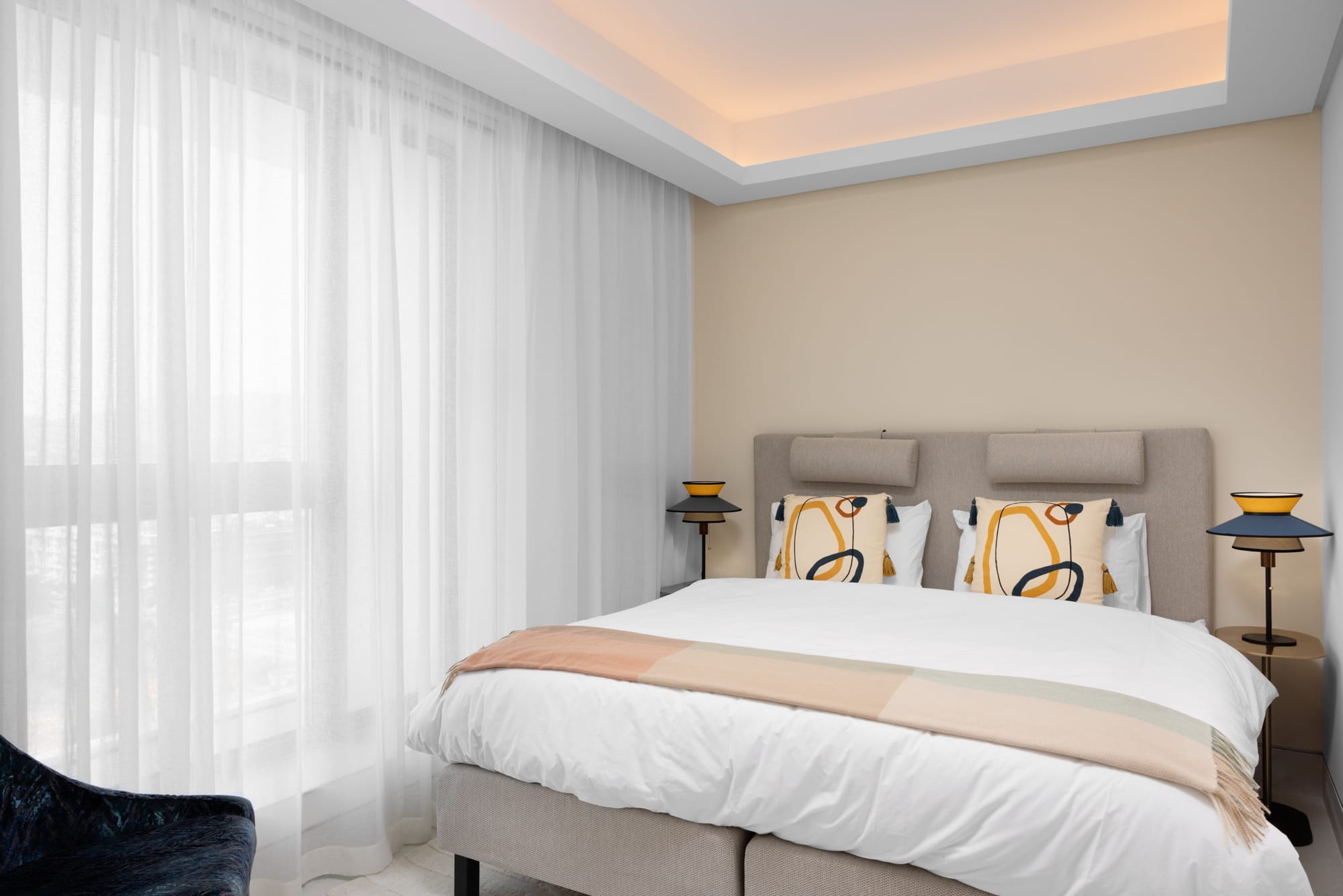 The building offers luxury amenities including 24/7 reception, a rooftop infinity pool with bar, fully equipped gym, saunas, indoor pool, and a coworking space—ideal for those balancing work and leisure. Families will also appreciate a specially designed kids' playroom for the little ones.