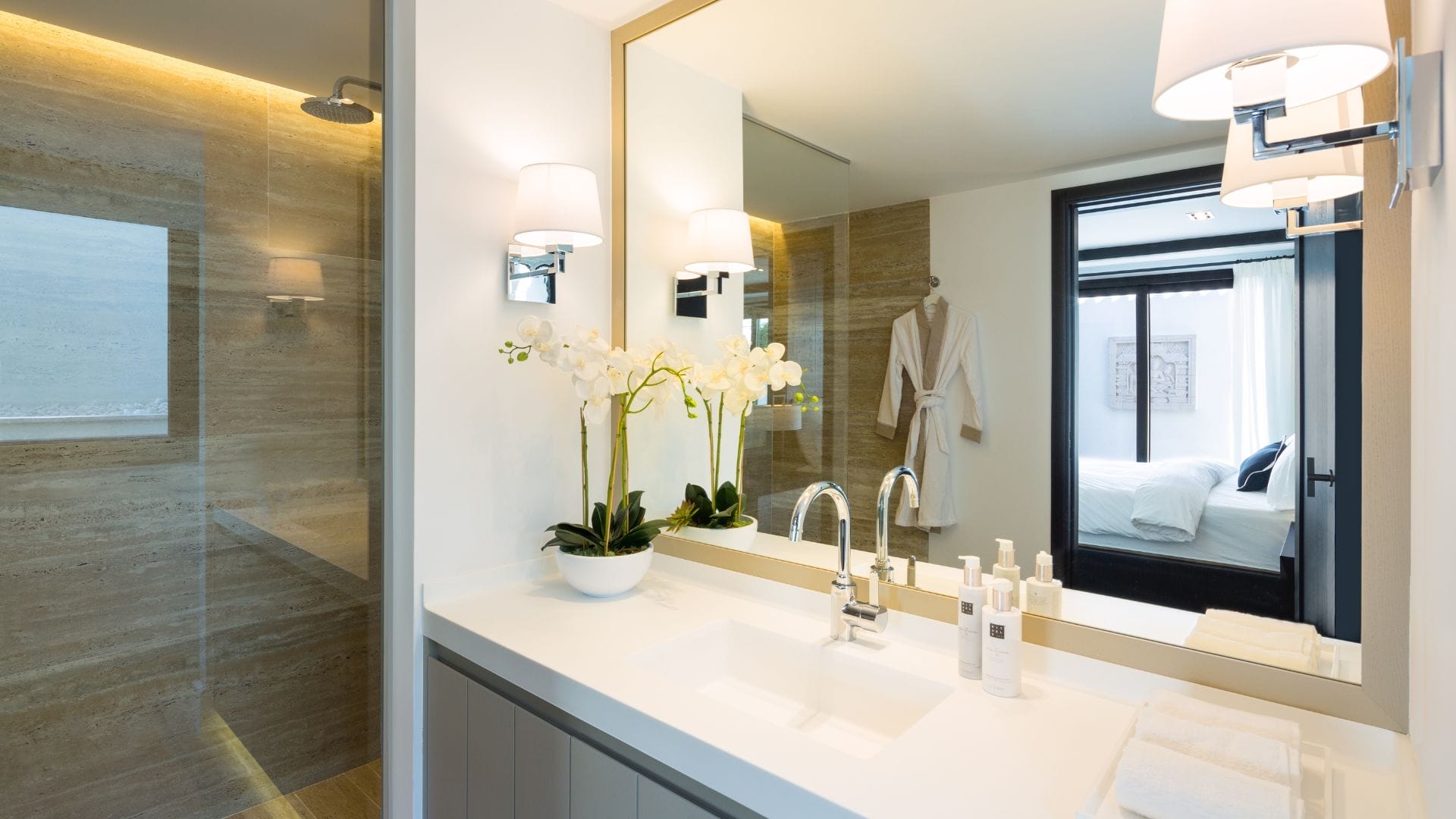 Inspired by traditional Andalusian architecture, its hexagonal design gives the main living area a distinctive character, while the lounge and dining areas are harmoniously integrated into an open-plan concept. Every corner has been designed to convey elegance, with contemporary décor in neutral tones that reflect serenity and sophistication.