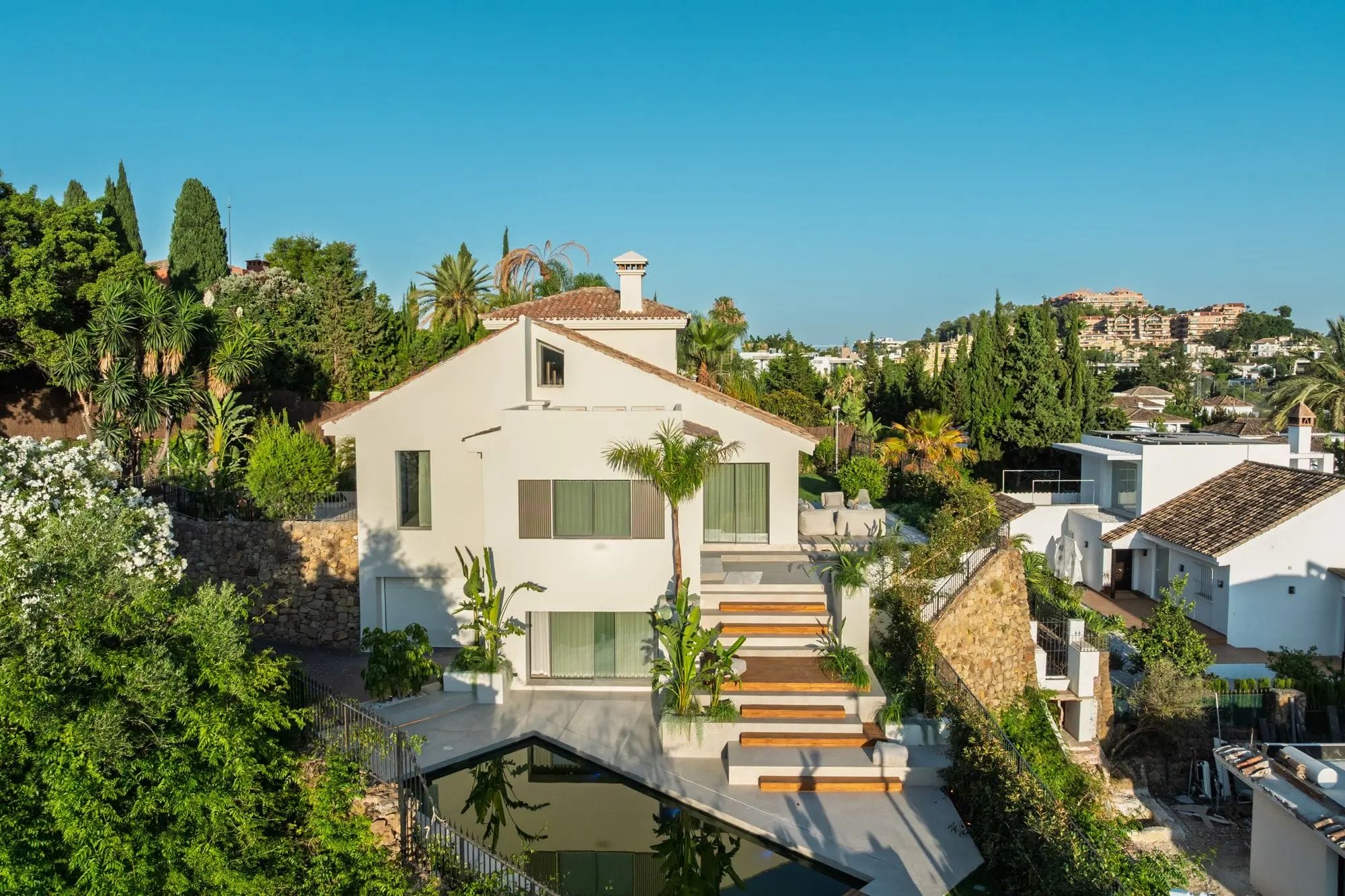 Located in the prestigious Golf Valley of Nueva Andalucía, Centauro 15 is an exceptional villa that blends contemporary architecture with Balinese boho inspiration and lush tropical aesthetics. This unique property was completely redesigned and renovated in 2025 to offer an immersive living experience, where natural light, high-quality materials, and a sensory connection with the landscape take center stage.