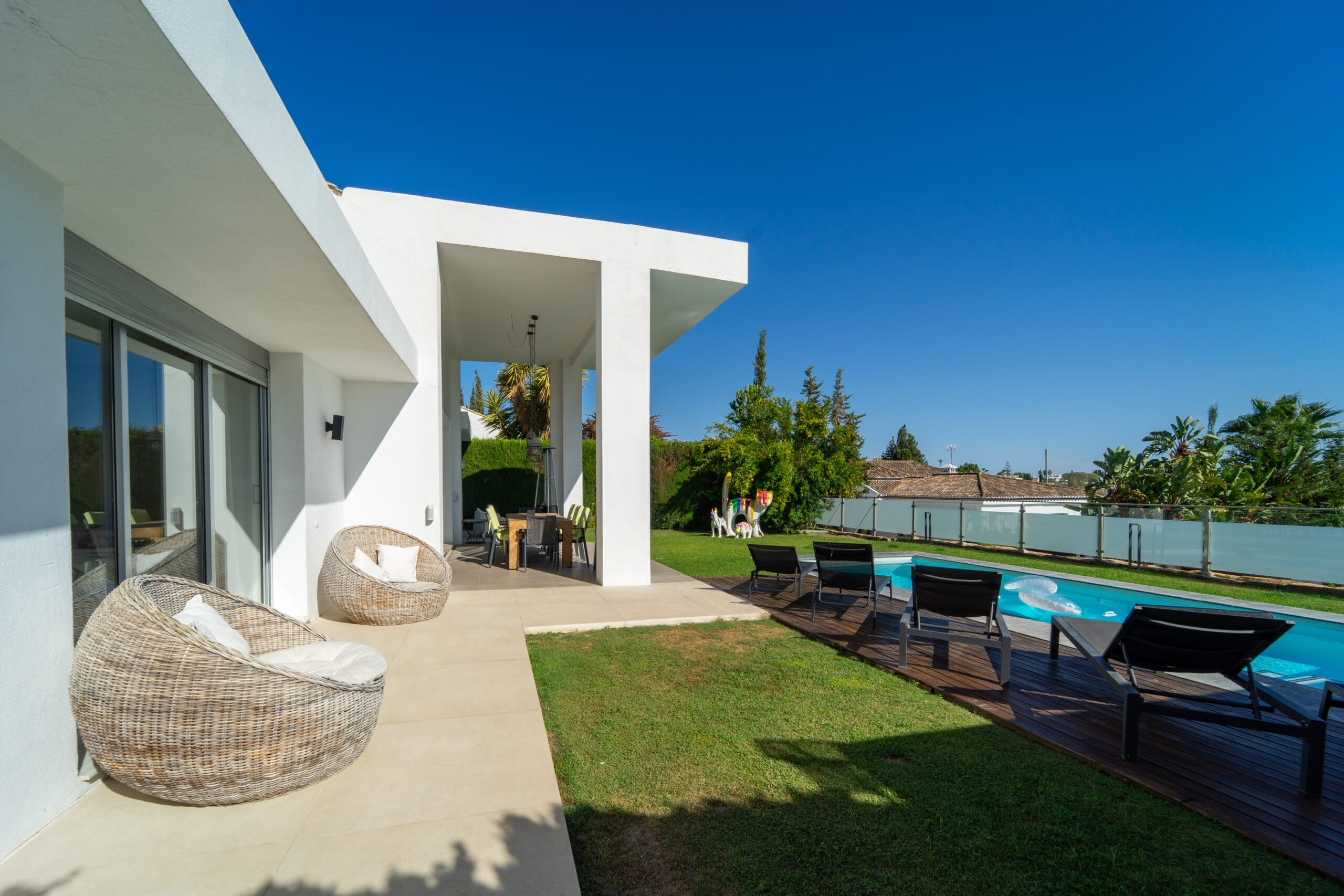 Located in the very heart of the Golf Valley, the villa is just a 5-minute walk from Los Naranjos Golf Club and close to several other prestigious golf courses. Puerto Banús is less than a 5-minute drive away, offering immediate access to beaches, restaurants, luxury boutiques, and all kinds of services. Marbella and Benahavís can be reached in just 10 minutes, with quick and convenient access to the A-7. A perfect location to enjoy the very best of the Costa del Sol.