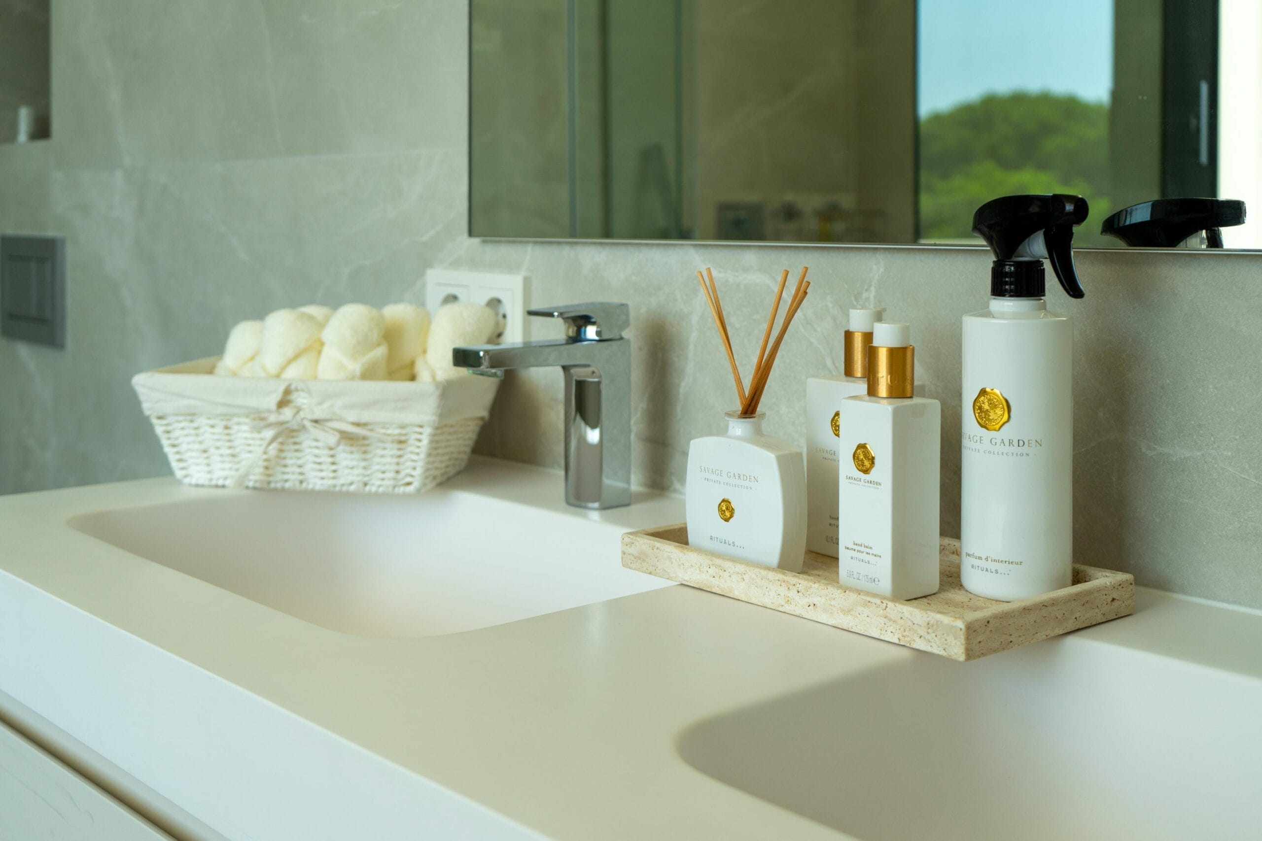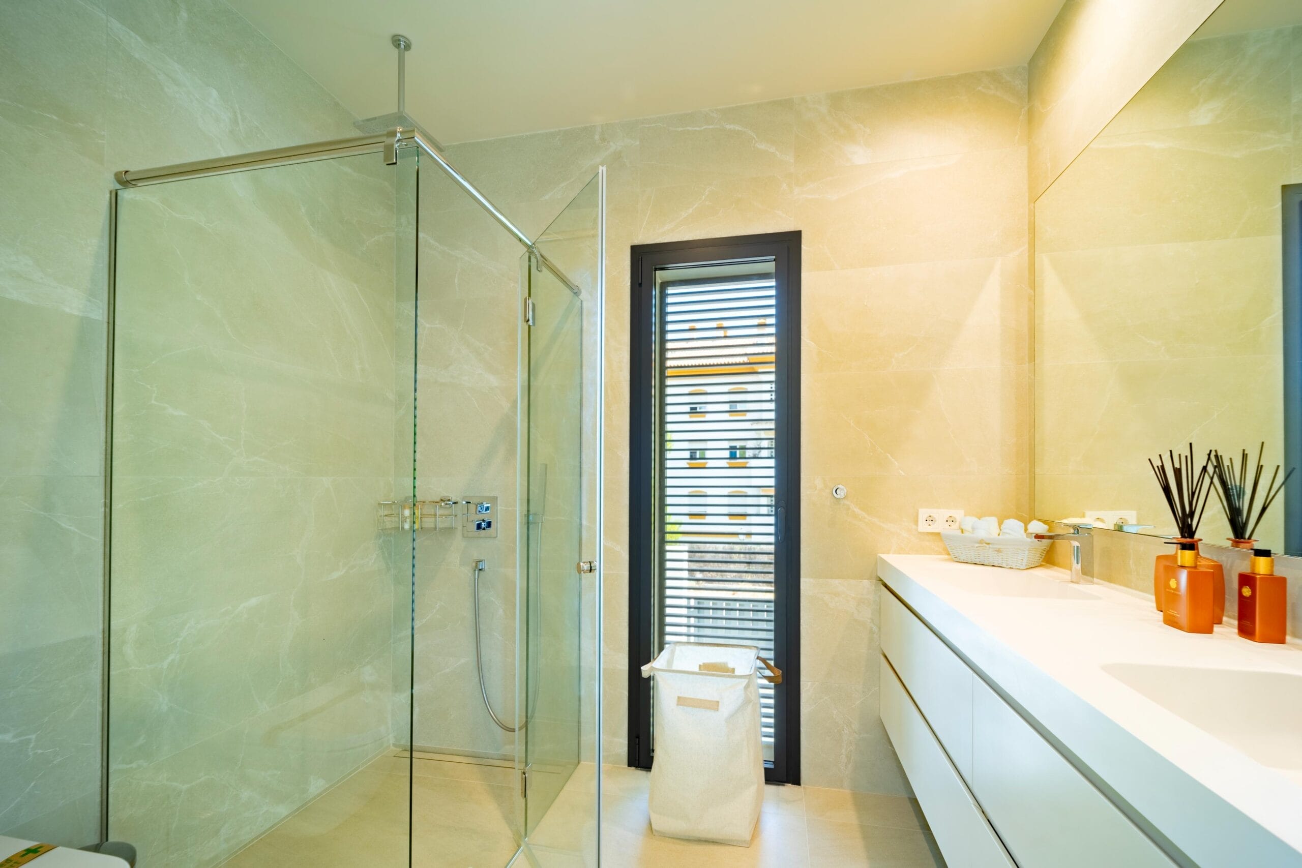 Villa Claveles features five luxurious bedrooms, each with an en-suite bathroom, as well as an additional guest toilet. The lower level offers a private gym, cinema room, wine cellar, laundry, storage room, and a spacious garage with a rotating platform. For maximum convenience, a private elevator connects all levels, from the basement to the rooftop, ensuring comfort and accessibility at every turn.