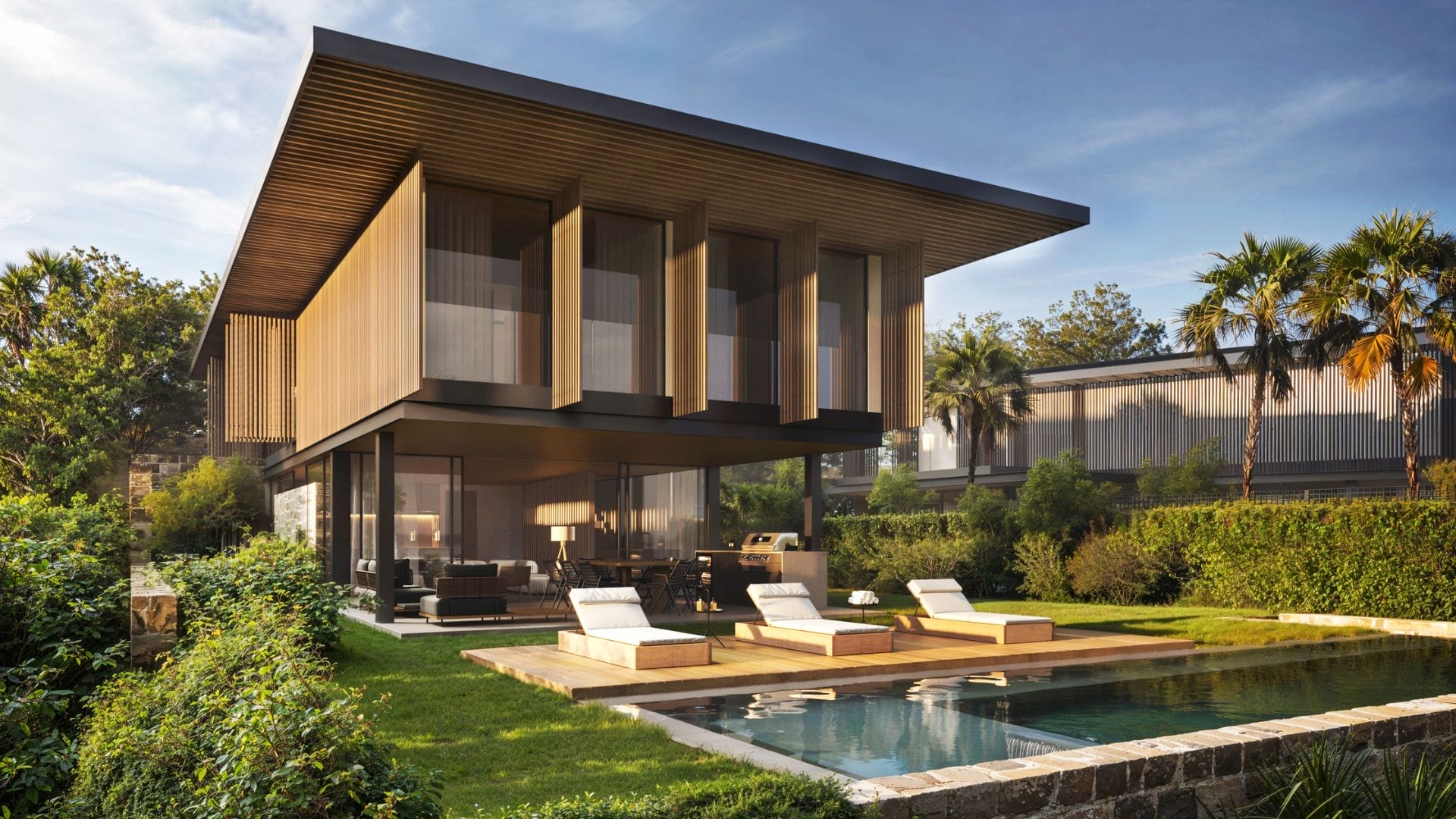 The villa has four en-suite bedrooms, each designed for maximum comfort and privacy. The master suite, located on the upper floor, includes a dressing room and luxury en-suite bathroom. The lower level offers a variety of additional spaces, such as an entertainment room, office, spa, and gymnasium, ensuring that all lifestyle needs are catered for in this exceptional home.