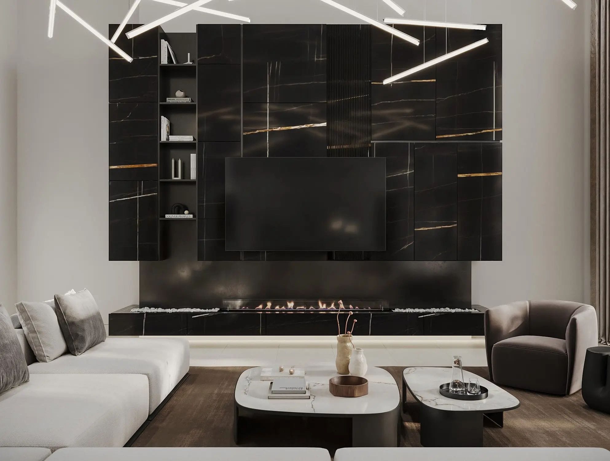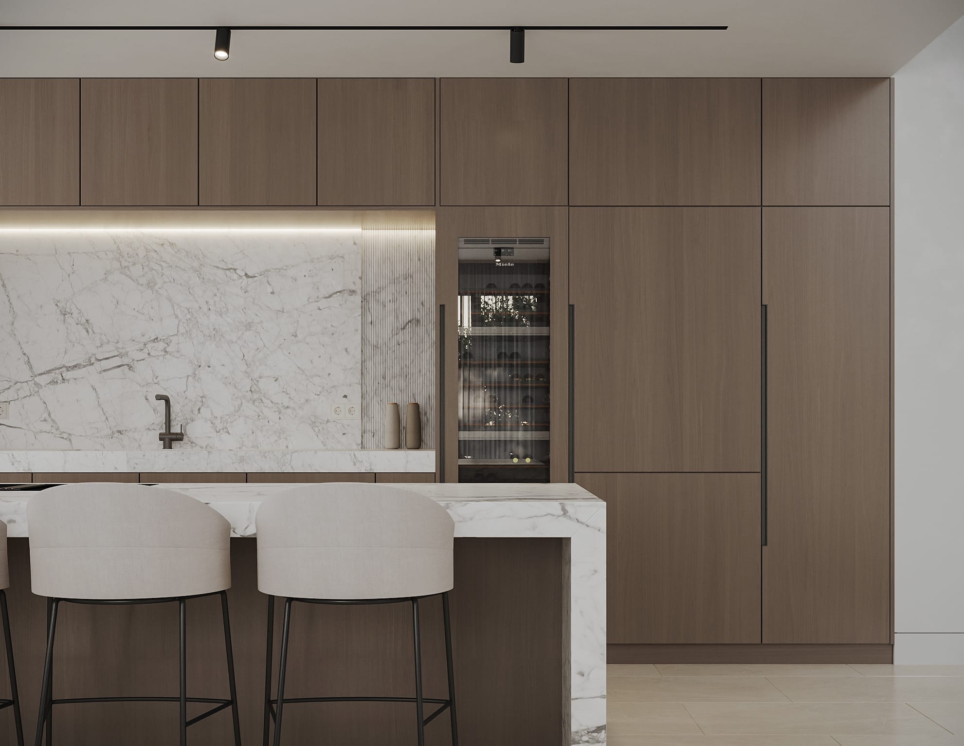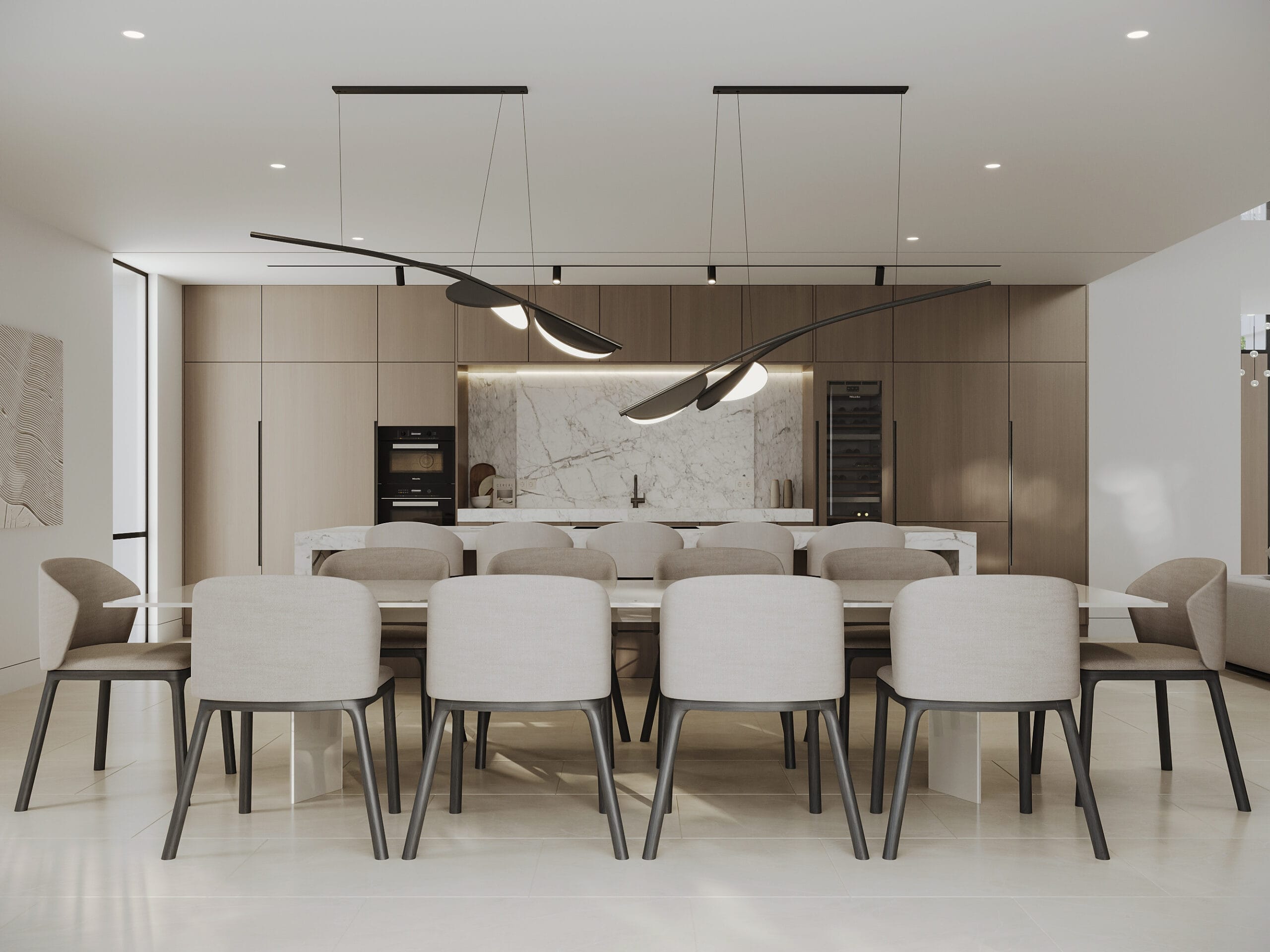 The interior of the villa has been designed to maximize light and spaciousness, with high ceilings and open spaces that allow natural light to flood every room. Luxury finishes, together with a layout that prioritizes comfort and functionality, make every corner a perfect place to relax and enjoy. The open-plan living room connects seamlessly with the modern kitchen, equipped with high-end appliances.