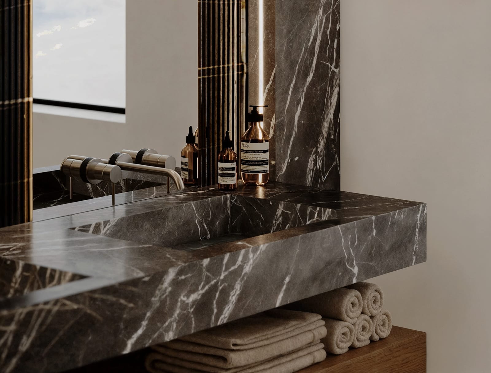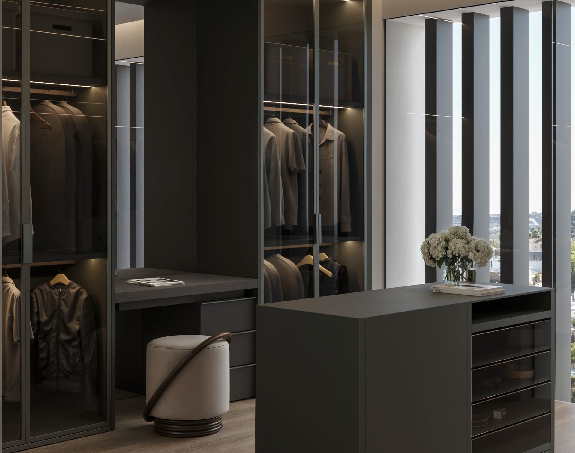This large villa offers spacious and elegant bedrooms, each with luxurious finishes and breathtaking views. The master suite presents itself as a private retreat with sea and mountain views and an en-suite bathroom designed with the highest quality materials. Every detail in the interior design has been thought out to create a relaxing, luxurious atmosphere of total comfort.
