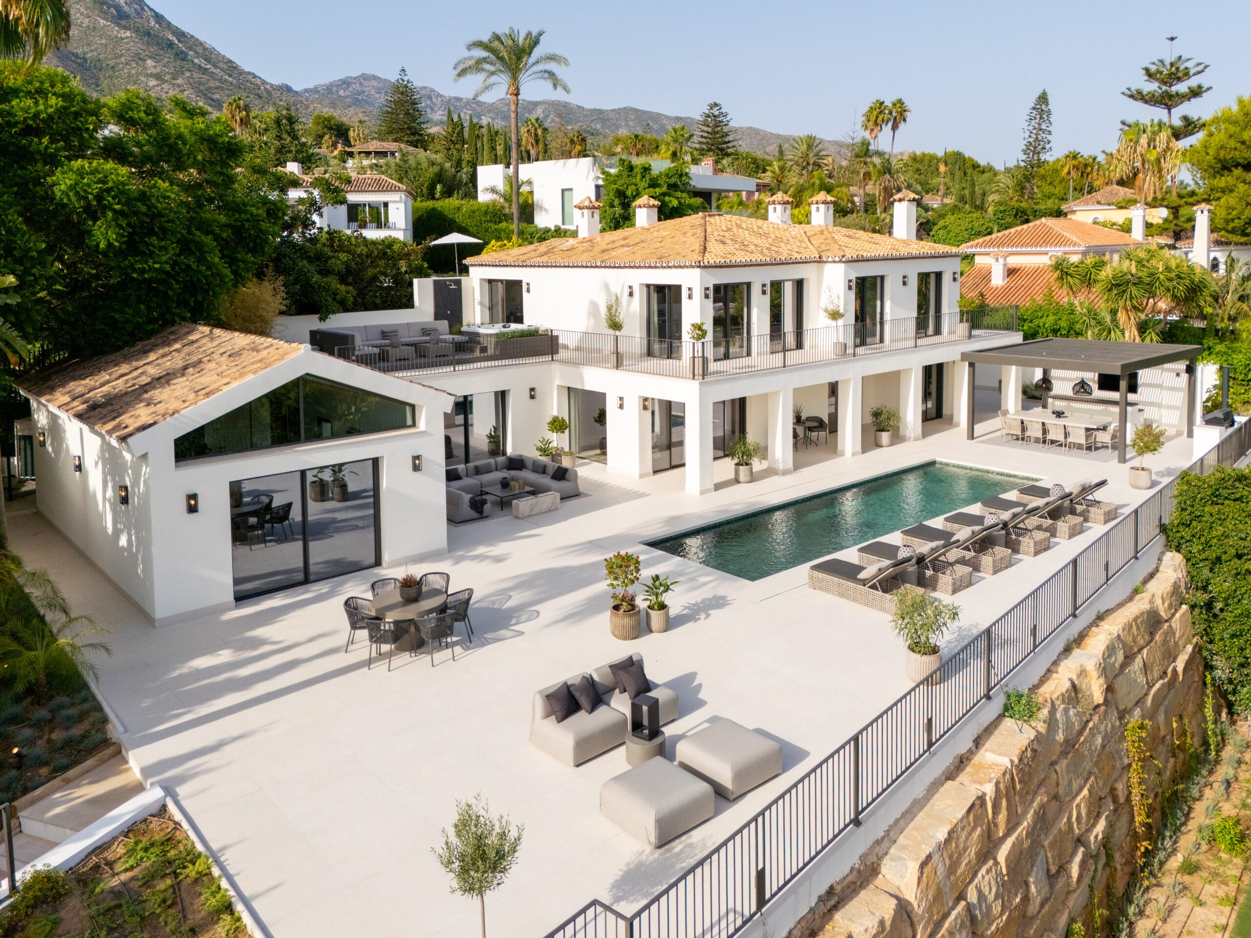 Rocío de Nagüeles is synonymous with exclusivity, tranquility, and proximity to Marbella's finest services. Just minutes from this villa are renowned beach clubs, prestigious golf courses, and the most select boutiques and restaurants of the Golden Mile. The 1,965 m² plot ensures privacy and generous outdoor space, all within an incomparable natural setting.