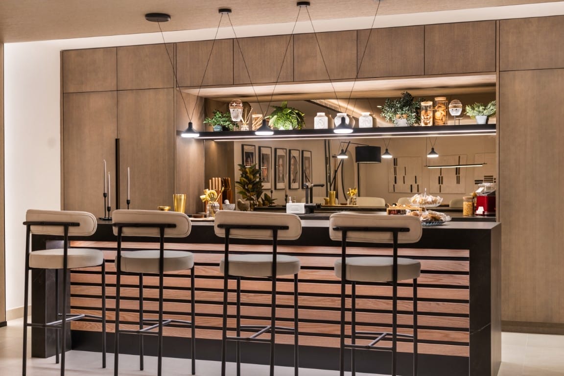 At the top, the solarium is a real gem, with unparalleled views of the Mediterranean Sea. This space is equipped with a Jacuzzi and an outdoor kitchen, making it the perfect place to enjoy unforgettable sunsets or to organize outdoor gatherings. Every detail has been thought of to offer a unique experience of luxury and comfort outdoors.