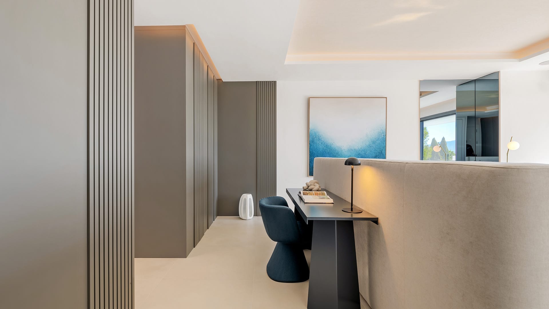 Villa George is a stylish contemporary residence located in one of Marbella's most sought-after and secure communities. Sierra Blanca is synonymous with exclusivity, surrounded by nature, with immaculate streets and private villas that offer a refined and discreet lifestyle. Its elevated position within the urbanization allows for breathtaking panoramic views of the Mediterranean Sea, turning every sunrise and sunset into a true spectacle.