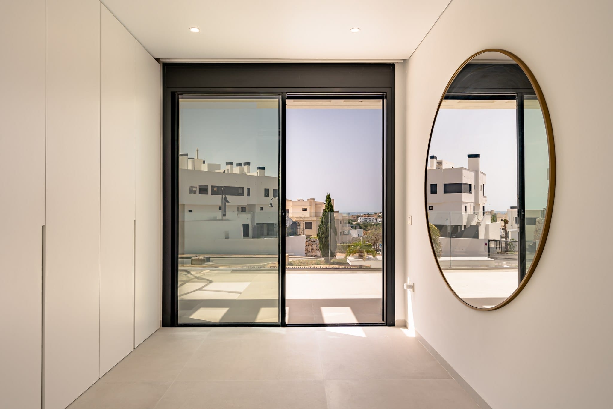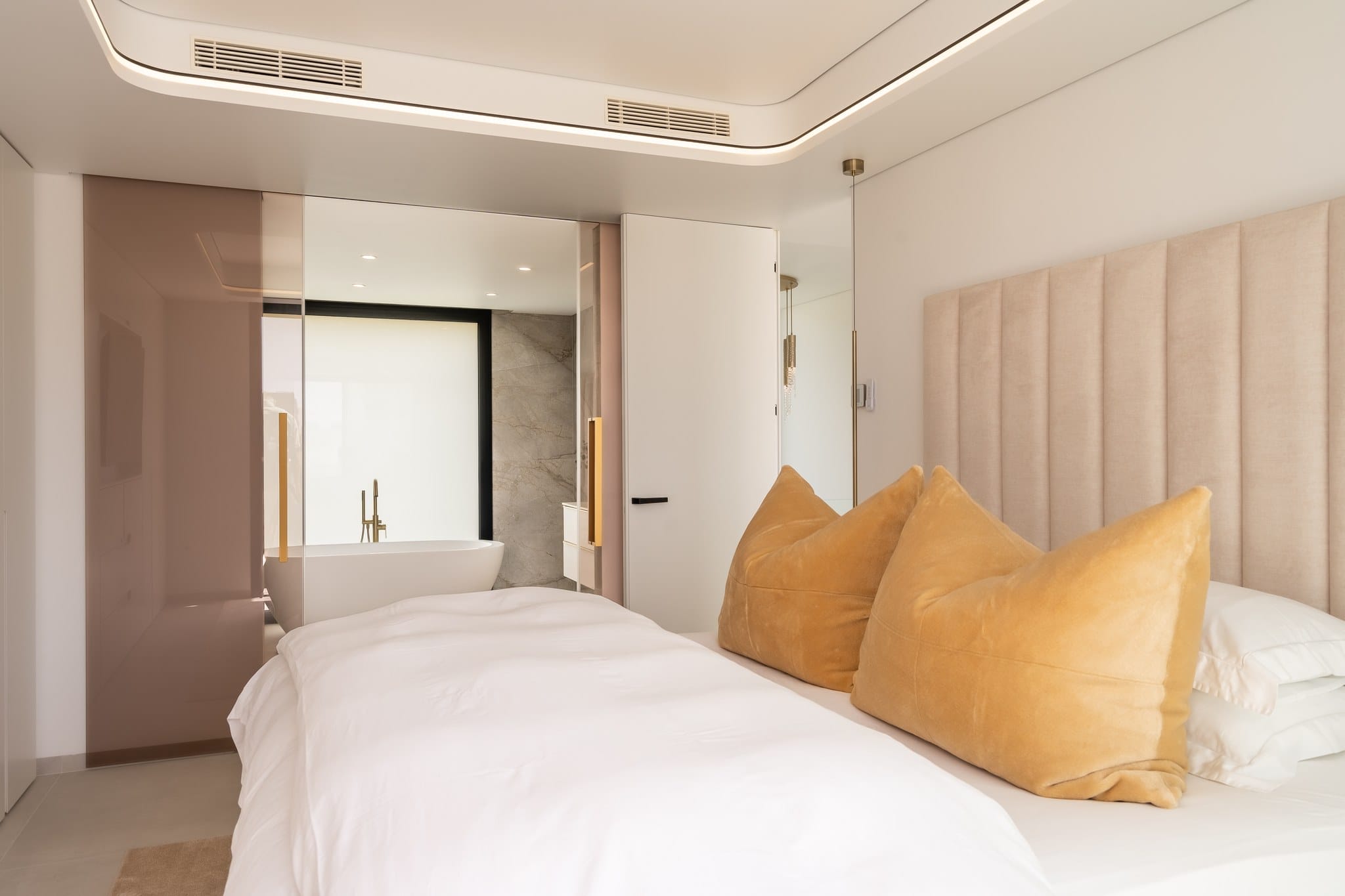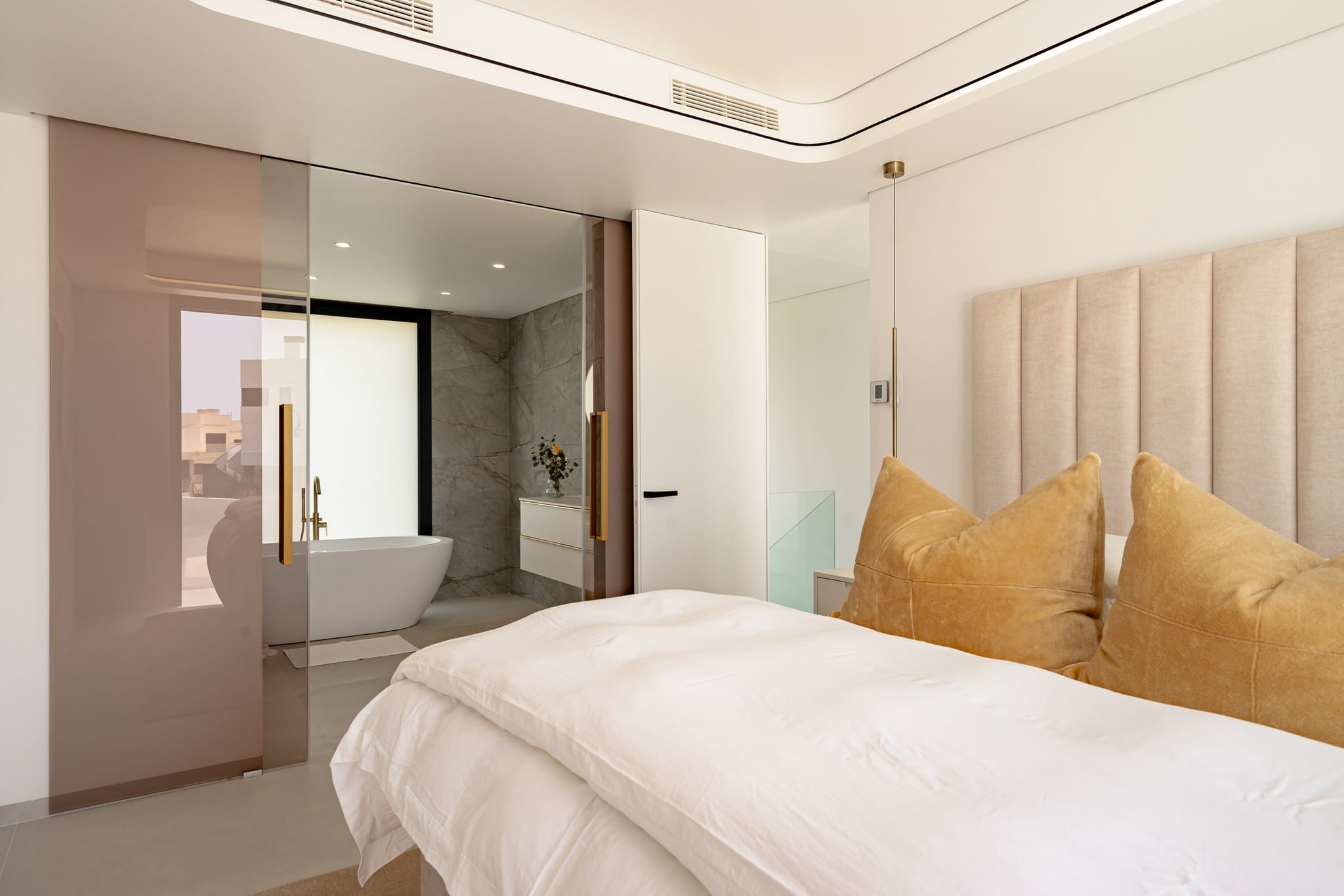This southwest-facing villa maximises natural light throughout the day and combines true privacy with unparalleled accessibility. Set on a meticulously landscaped plot, it features a private pool, expansive terraces, and low-maintenance gardens designed for seamless indoor–outdoor living. The architecture is a study in contemporary elegance, with clean lines, open-plan interiors, and high-quality finishes. Four generous bedrooms provide flexibility for family life or entertaining guests, while thoughtfully designed living spaces connect directly to the terraces, creating a fluid social axis and enhancing the sense of Mediterranean openness.
