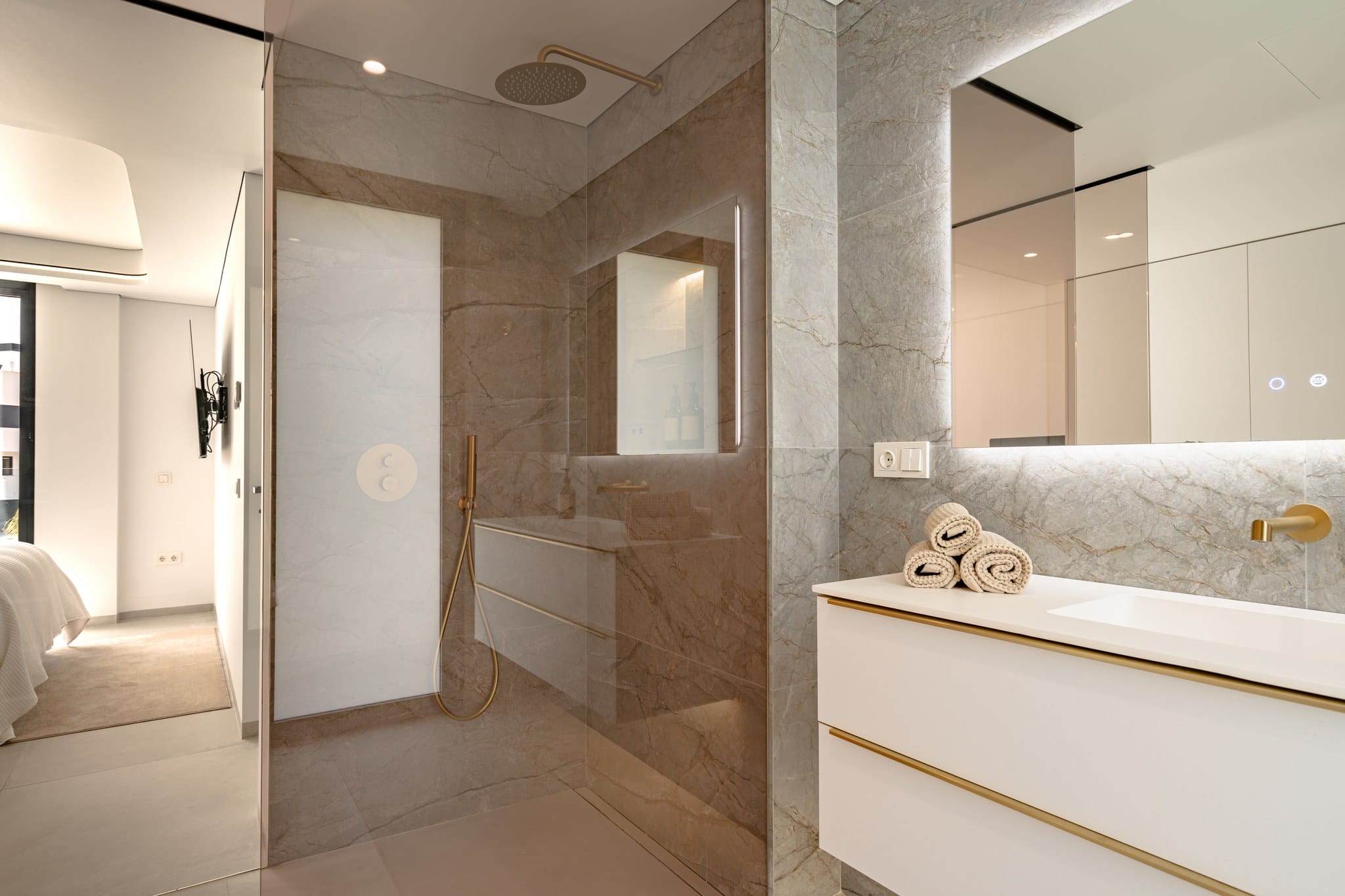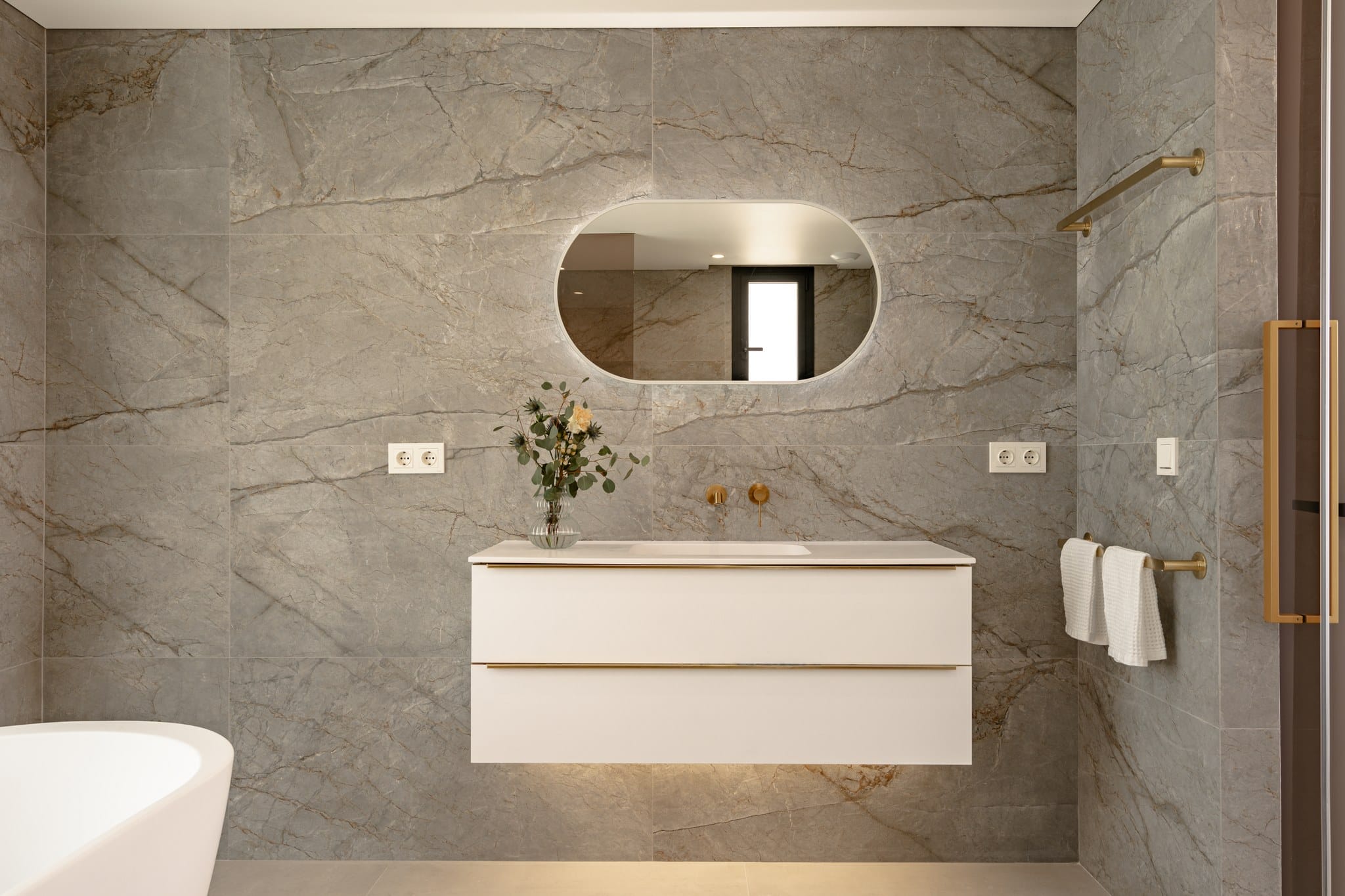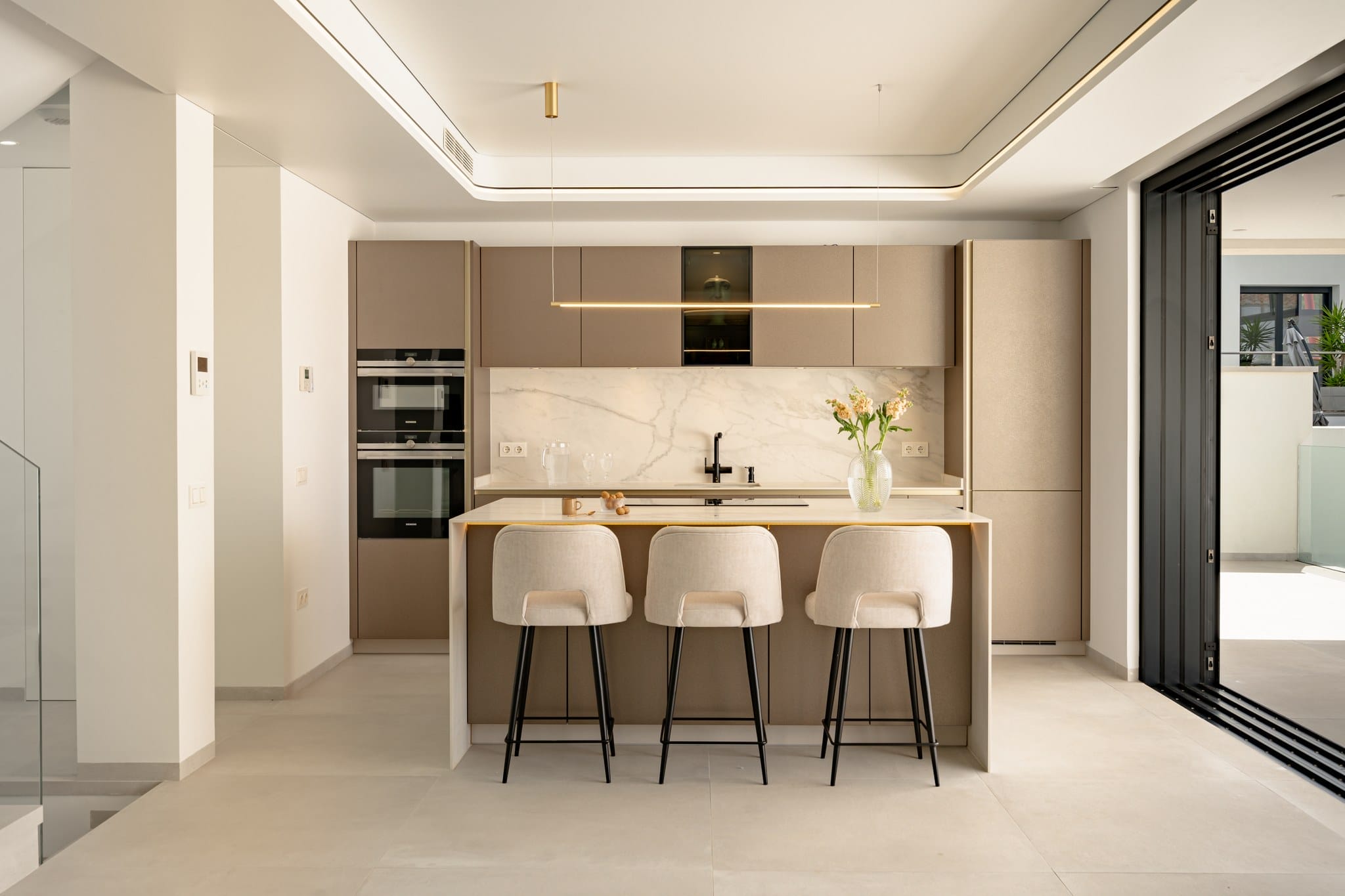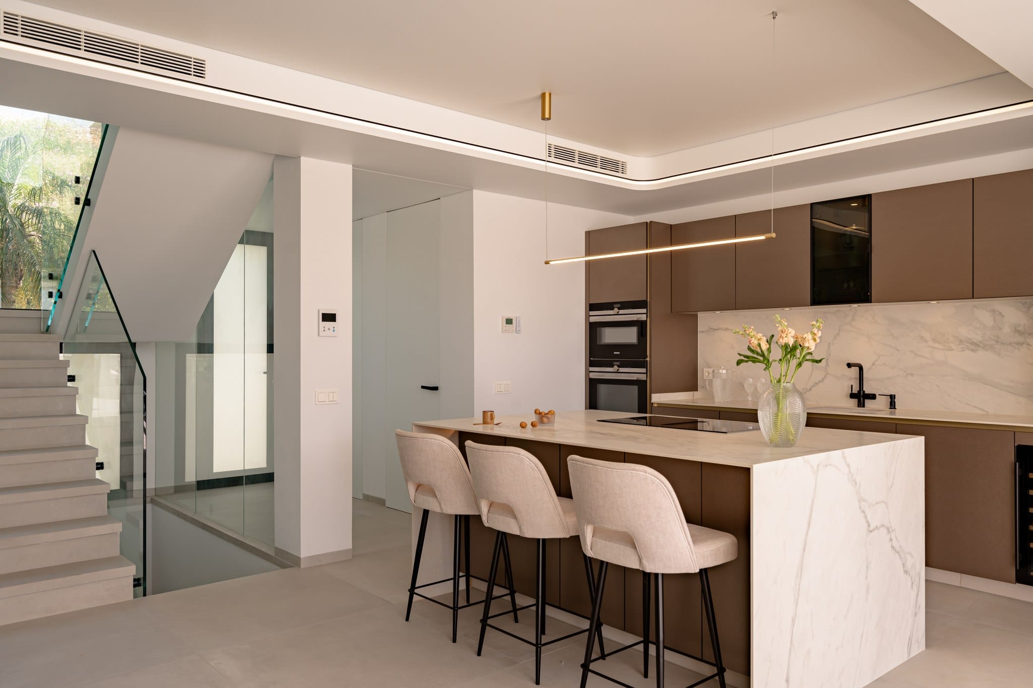 This southwest-facing villa maximises natural light throughout the day and combines true privacy with unparalleled accessibility. Set on a meticulously landscaped plot, it features a private pool, expansive terraces, and low-maintenance gardens designed for seamless indoor–outdoor living. The architecture is a study in contemporary elegance, with clean lines, open-plan interiors, and high-quality finishes. Four generous bedrooms provide flexibility for family life or entertaining guests, while thoughtfully designed living spaces connect directly to the terraces, creating a fluid social axis and enhancing the sense of Mediterranean openness.