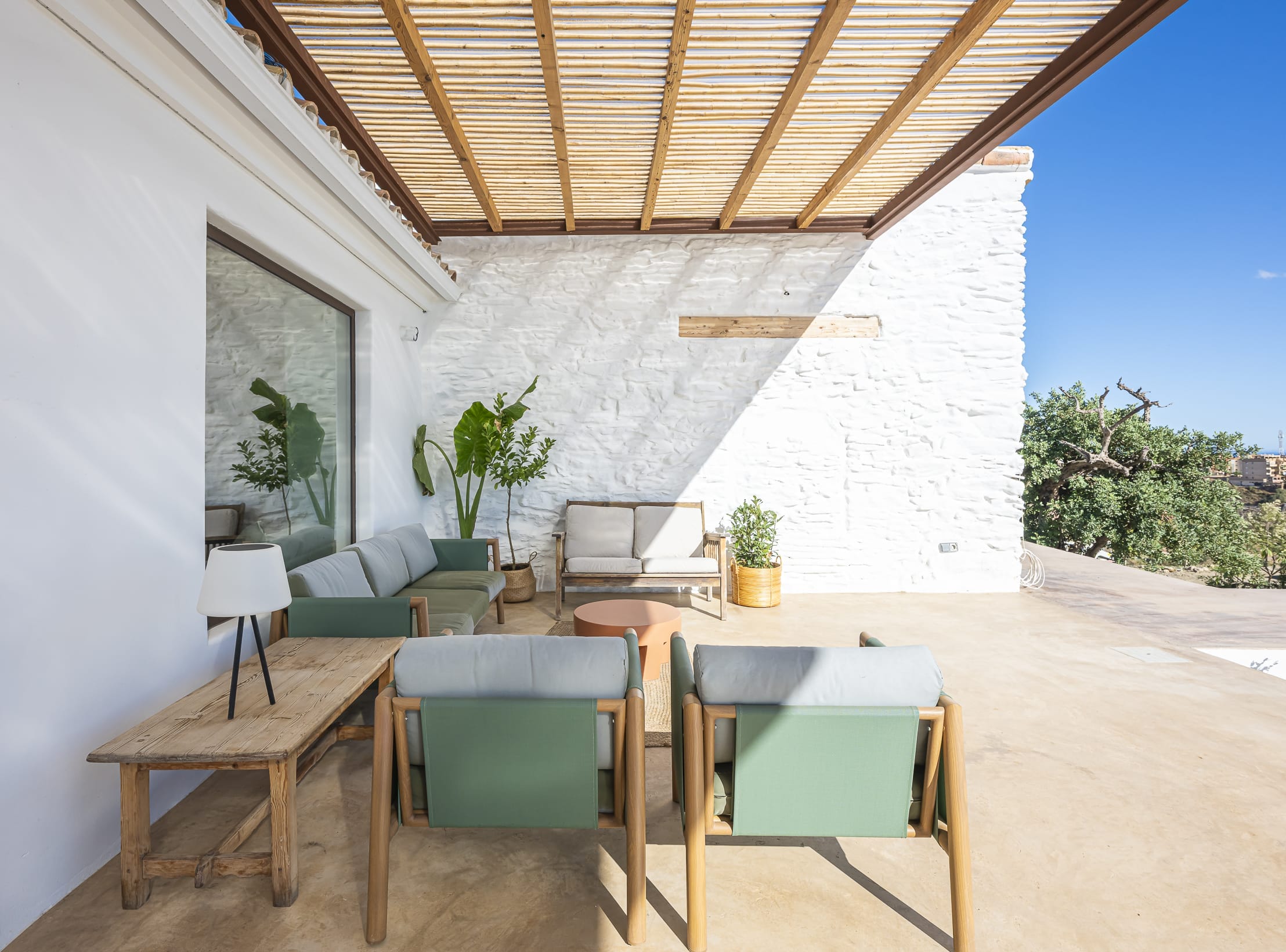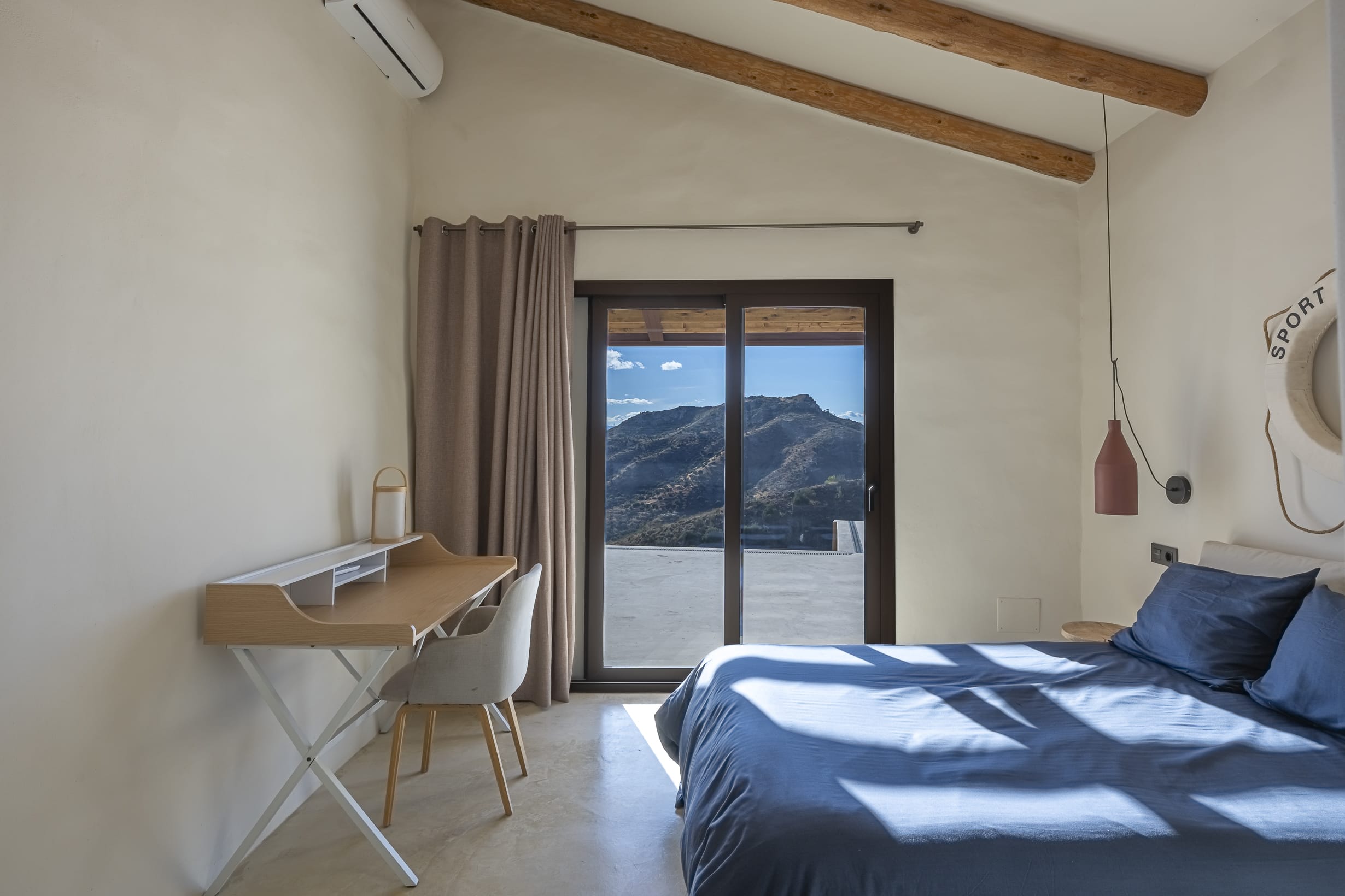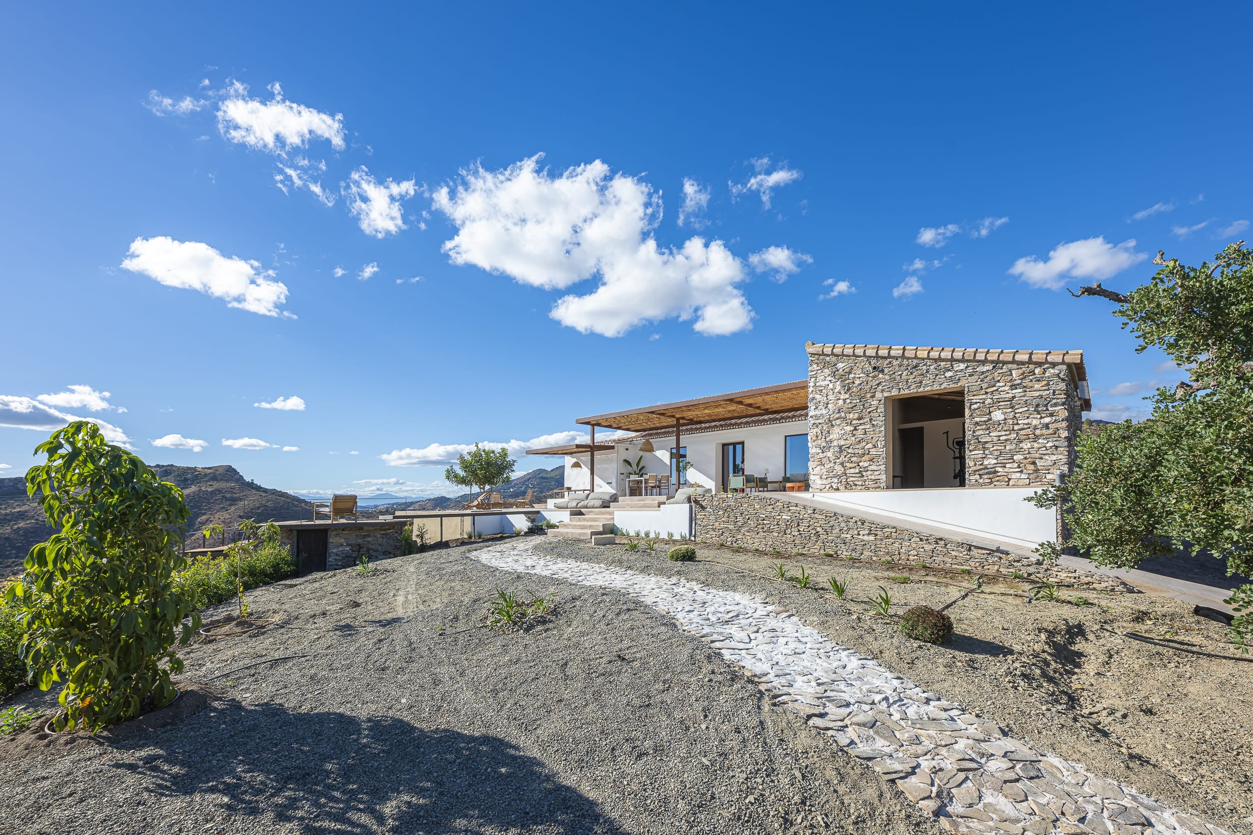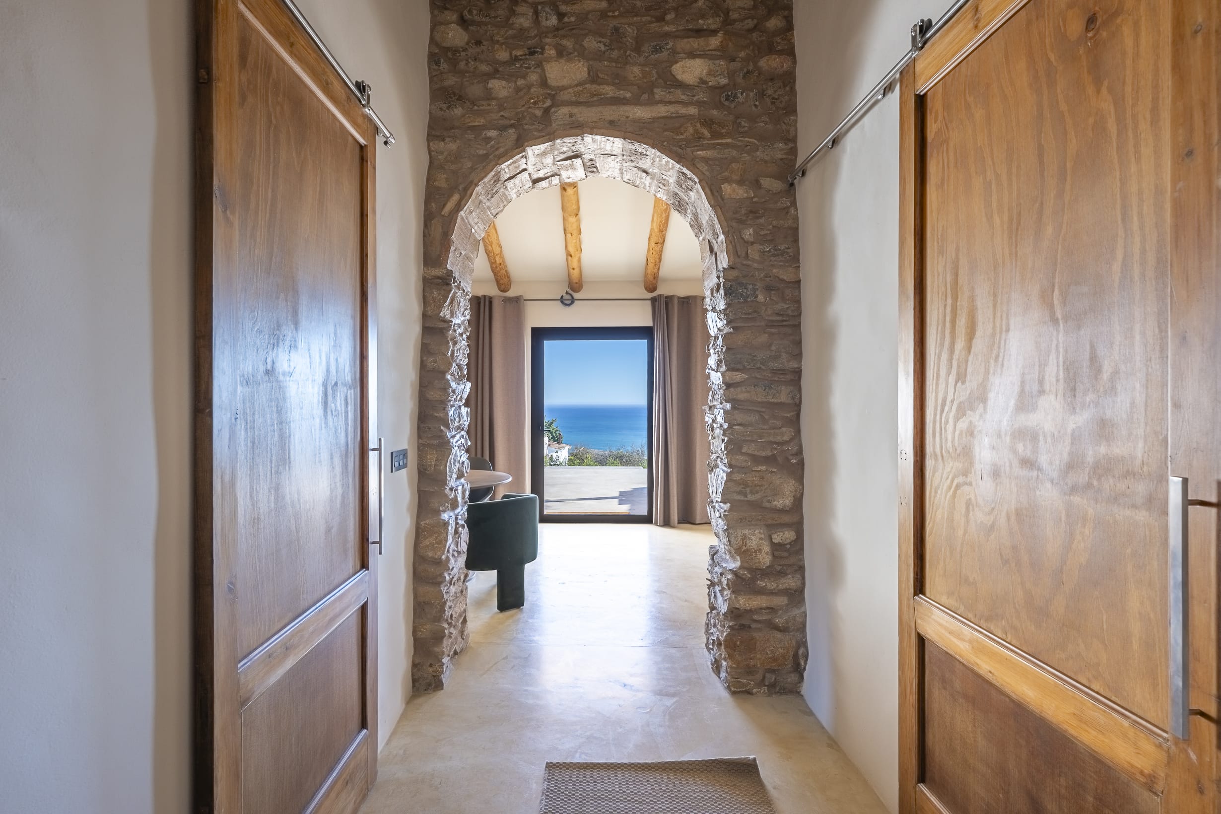 The house has been renovated while preserving the thick walls typical of stone homes with over 100 years of history. Its rustic style is modern and minimalist. The flooring is cement, and the high quality windows and frames are made of aluminum with large security glass panels, resistant to noise and heat. The central wall of the house is stone, featuring an original arch that has been restored to its original state.
