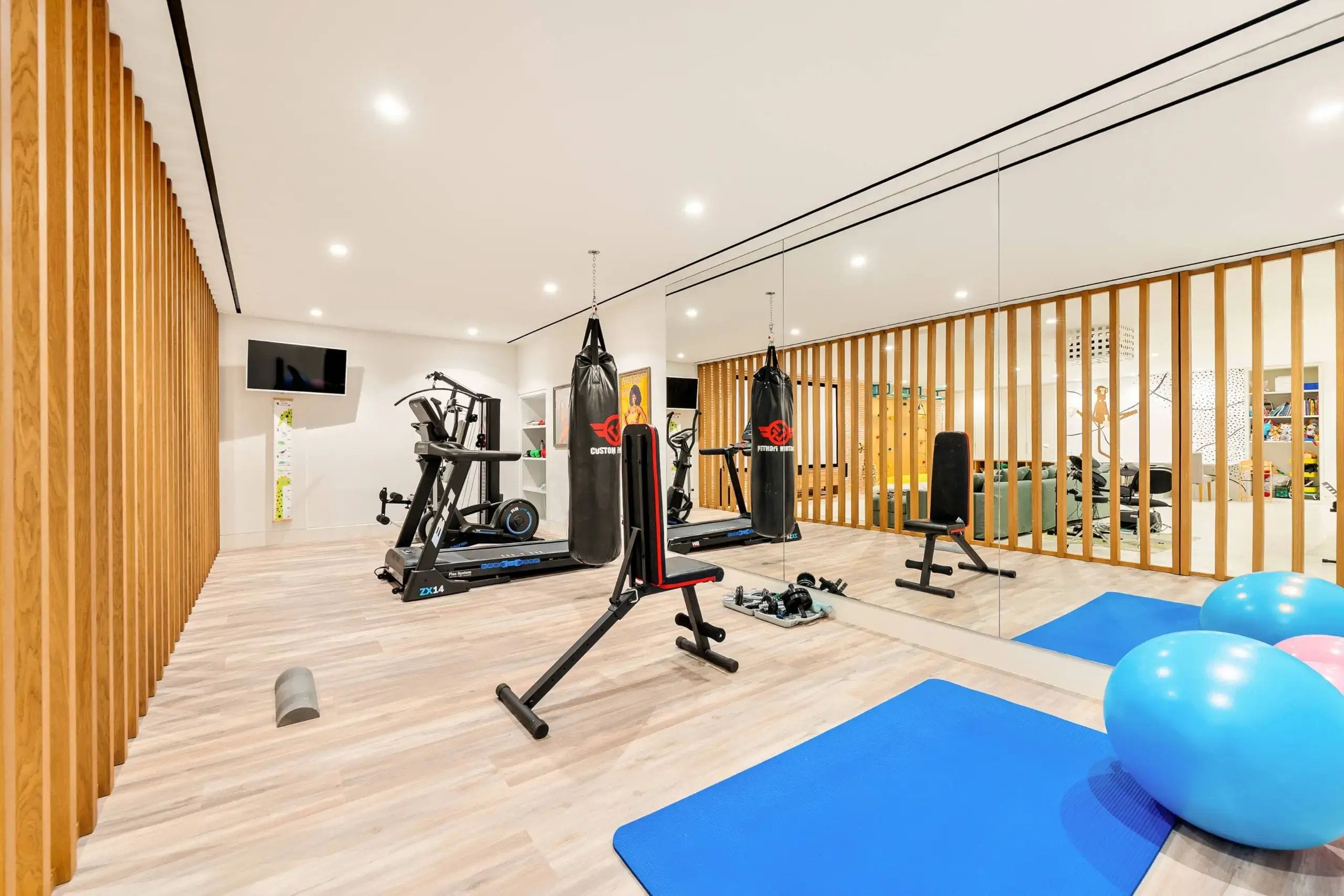 Accommodation is distributed across six well-appointed bedrooms, with the principal suite offering a walk-in wardrobe and a refined en-suite bathroom. Additional features, such as a dedicated home office and a fully equipped entertainment level including a gym, media area, and leisure spaces add versatility that aligns with modern living standards. Each element of the home reflects a considered approach to comfort, functionality, and material quality.