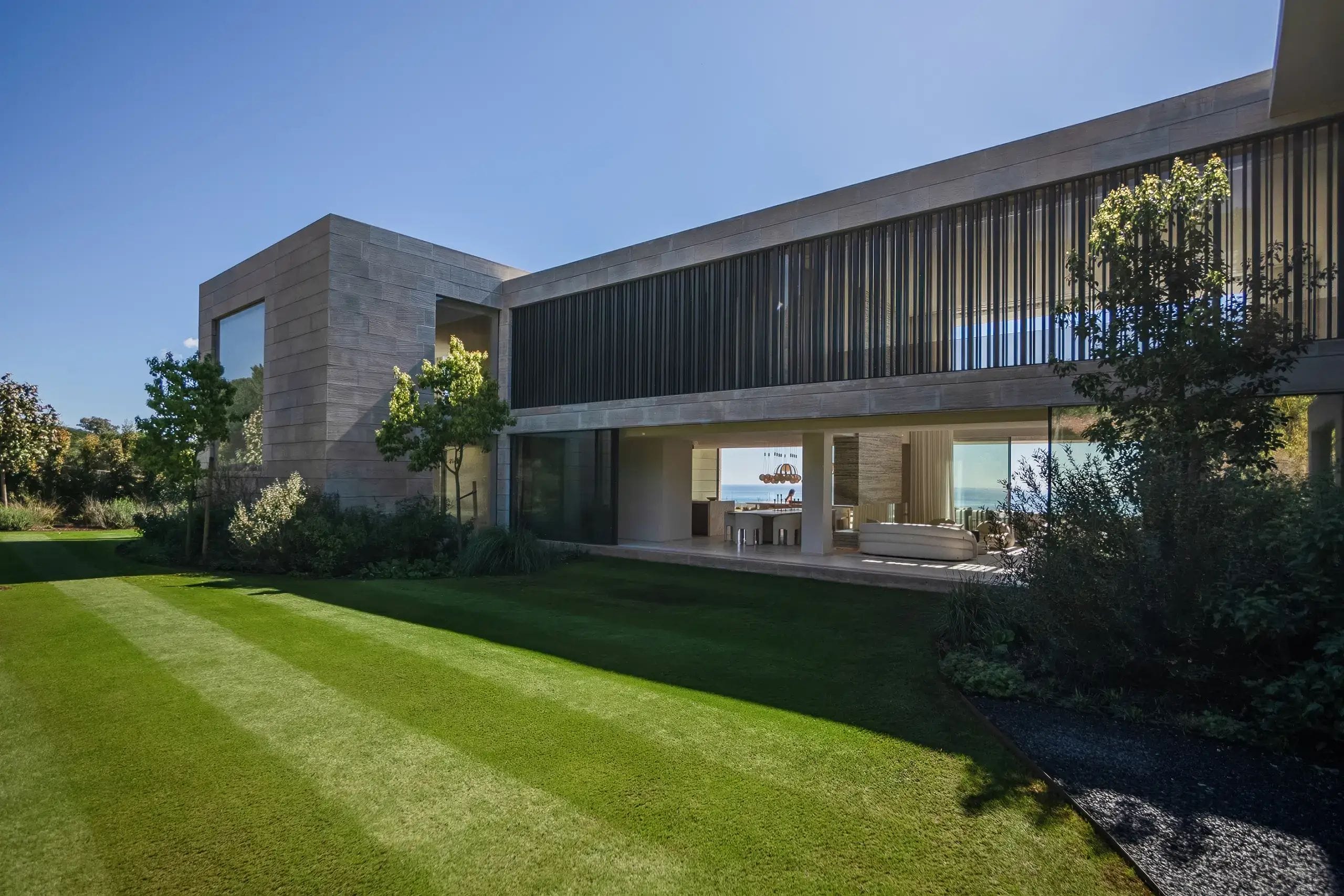 The surroundings of the property are as impressive as its interior. The garden, landscaped with native species from the region such as olive trees, cypresses, cork oaks, and lavender, blends harmoniously with the views of the Mediterranean Sea. Nature not only surrounds but also interacts with the architecture, creating a dynamic and ever-evolving environment. The spacious terraces and pergolas provide the perfect place to enjoy the outdoors, while the Mediterranean landscape invites relaxation and enjoyment. It is a true retreat where nature and design merge perfectly.