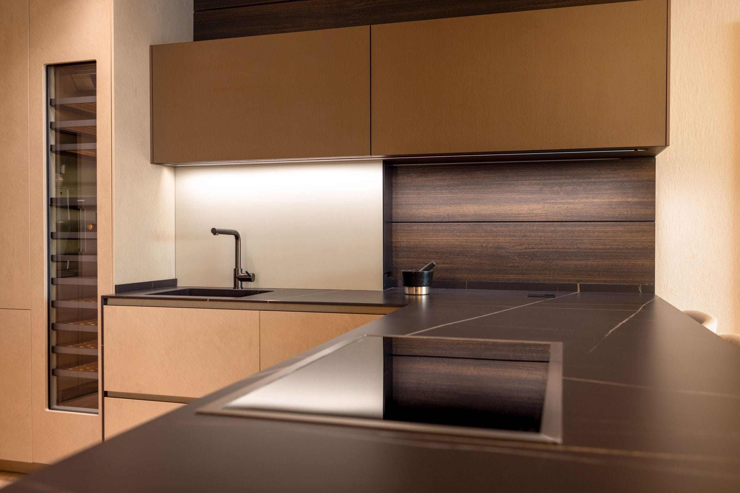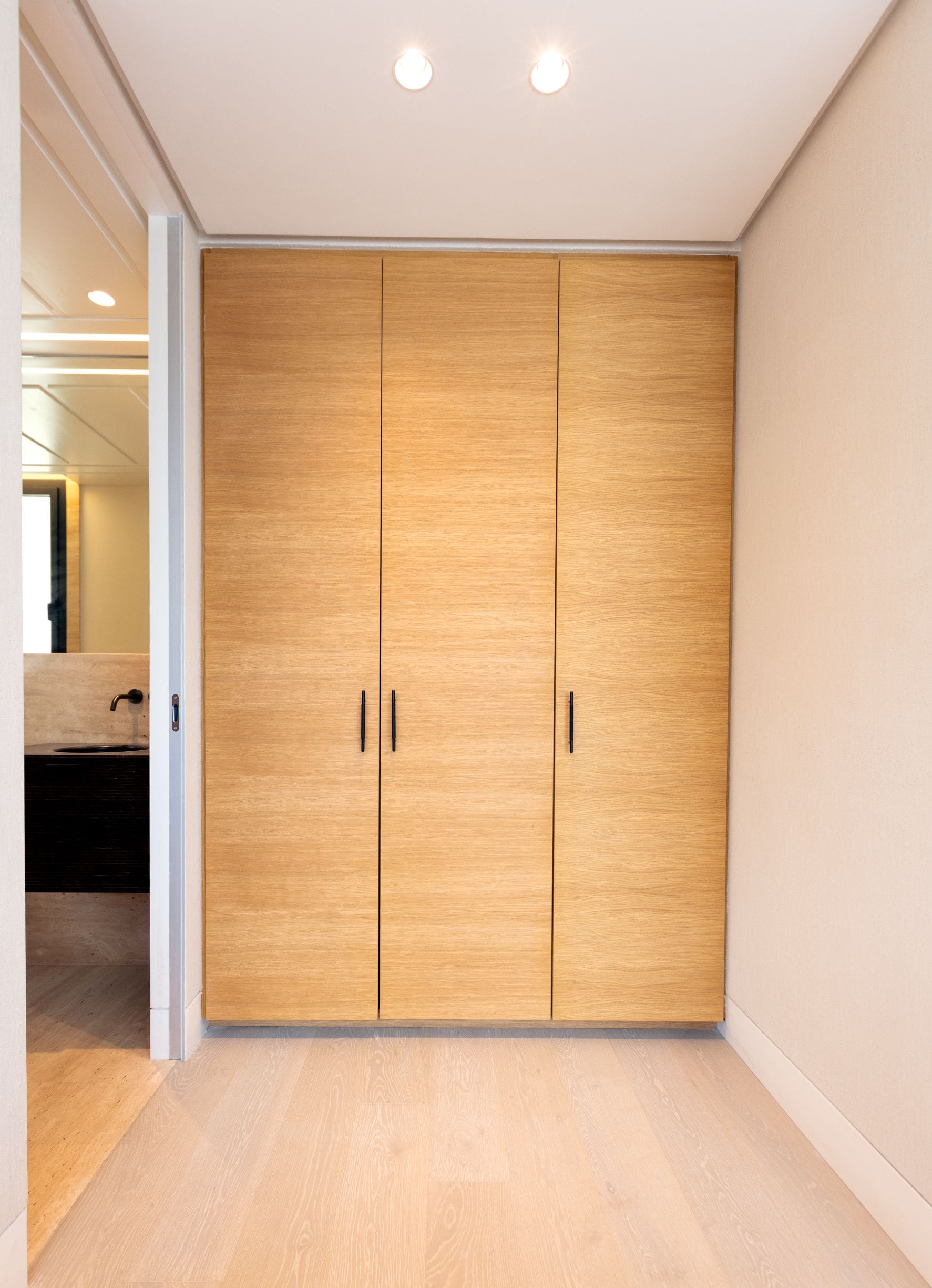 The narrower side of the building is oriented towards the land, in search of a connection with the interior. The choice of every detail of the architecture and design follows the Ikkil Bay philosophy. Wood, marble and glass are the predominant materials of the highest quality. They emerge from the interior of the flats to completely envelop the exterior of the building.